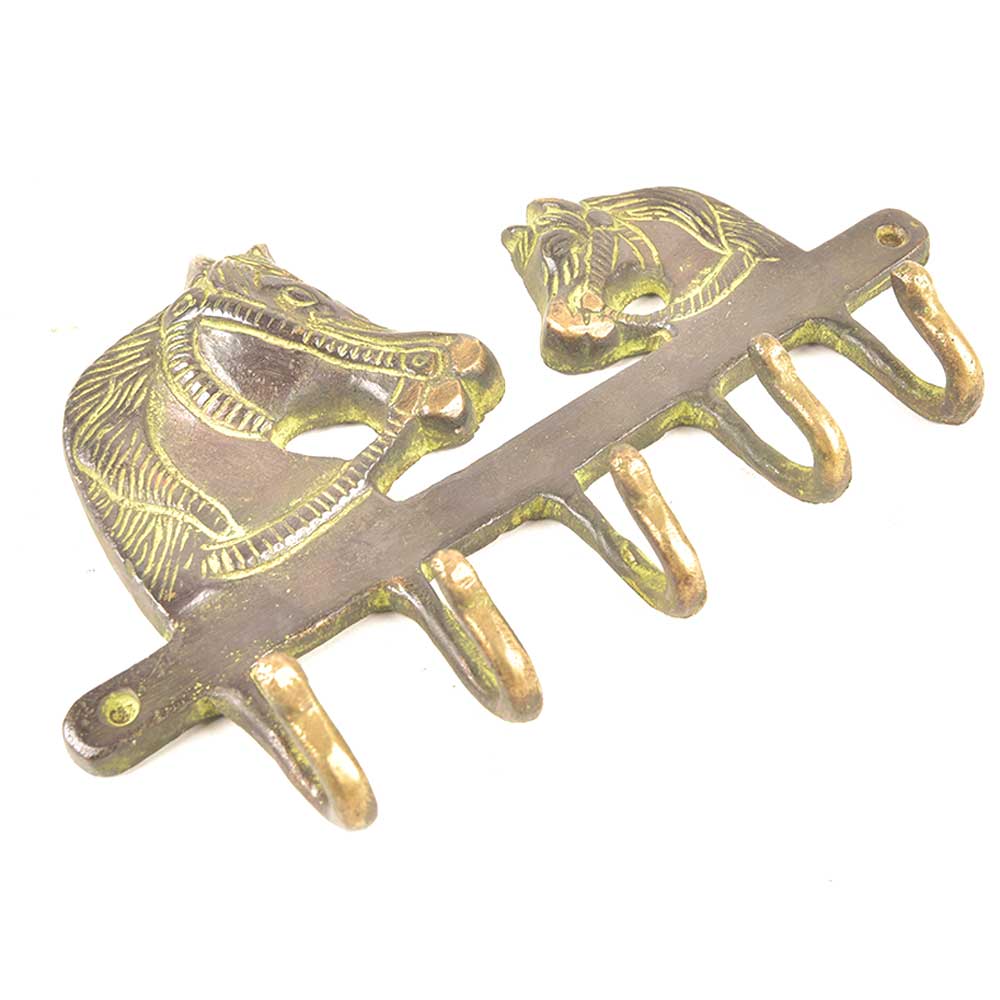 Brass Hooks Holder and Hanger with Two Horse Heads