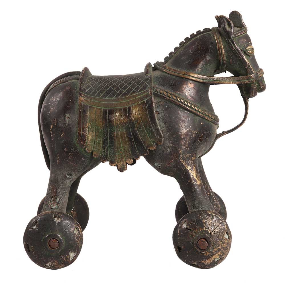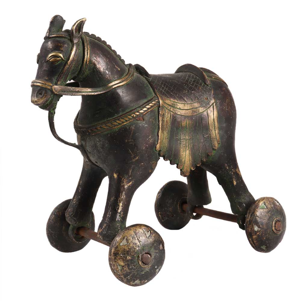 • Brass Horse Temple Toy With Four Wheels