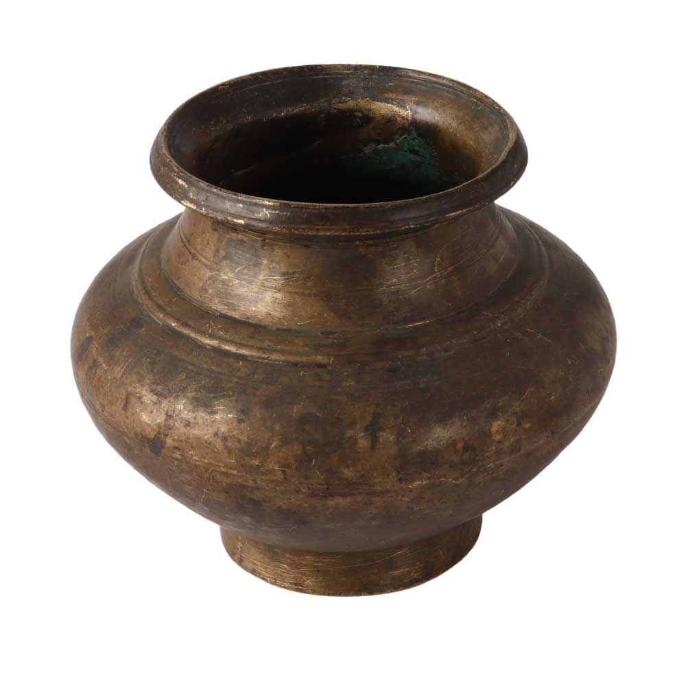 Brass Kalash Water Storage Pot In Dark Patina