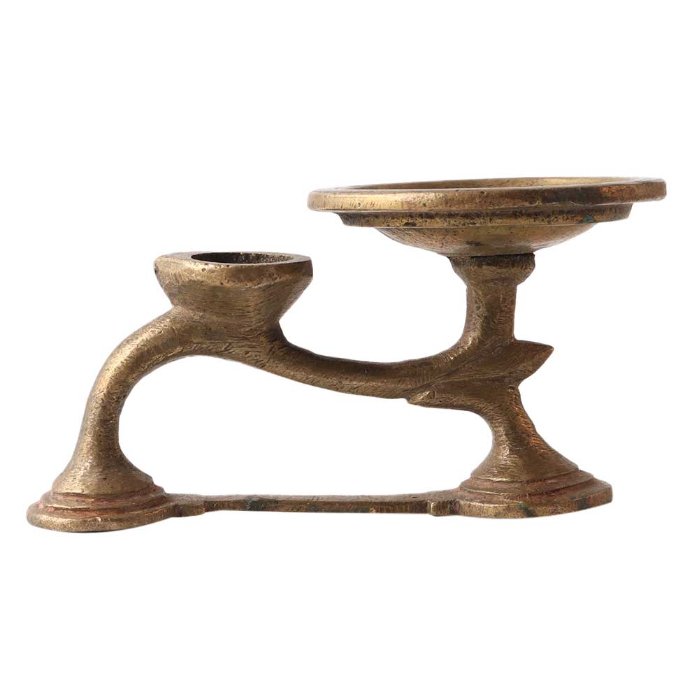 This old brass Camphor Stands, or Kapoor Danis, are used. in puja.  The incense burner has a very long stand and is spacious for burning camphor or dhoop.  The Kapoor dani is constructed of brass and has a lovely golden finish. According to Hindu mythology, brass is very auspicious, and this indian Camphor Stand/Kapoor Dani offers a lot of great energy for your home, place of business, and place of worship when used there.