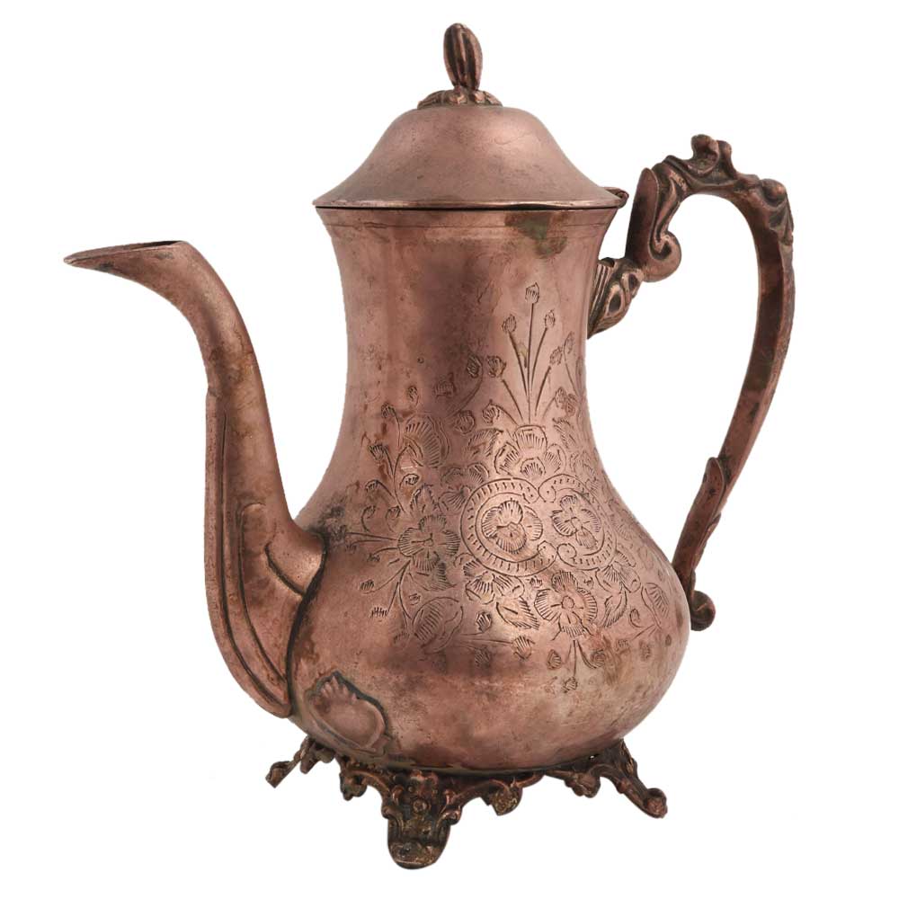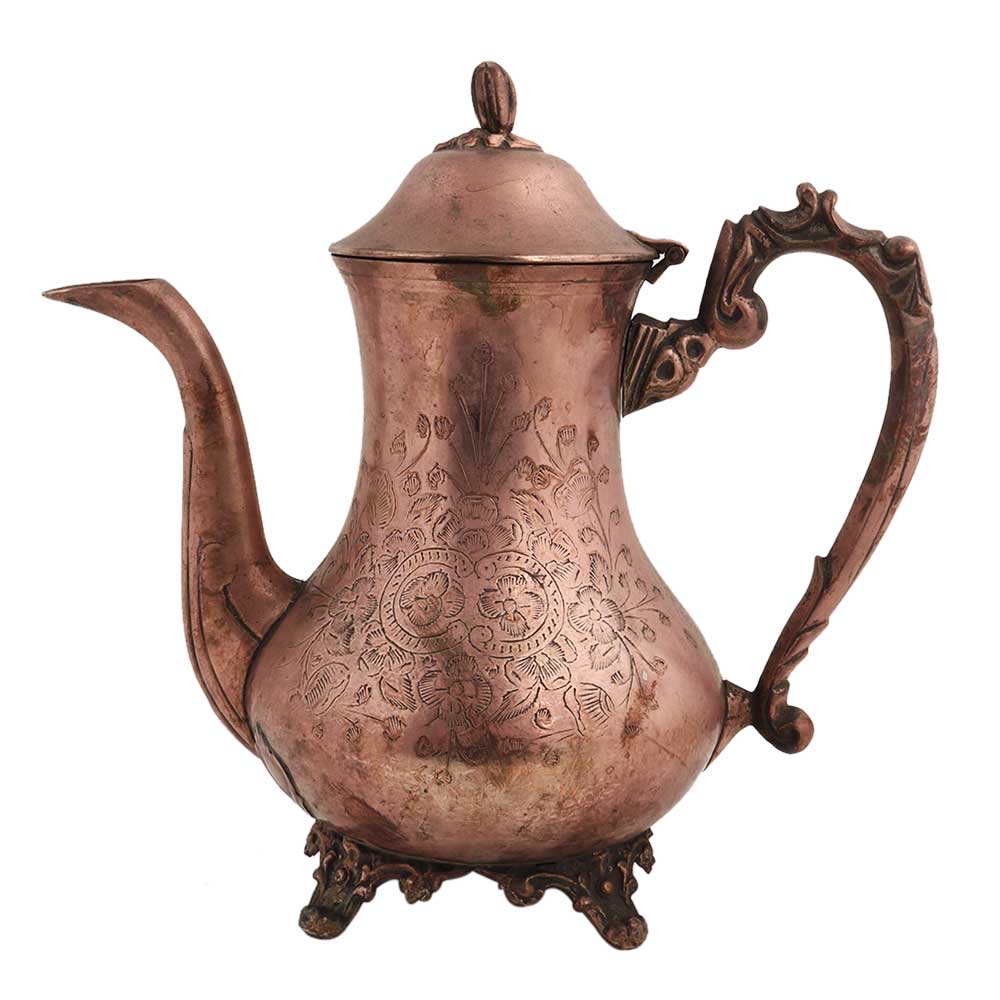 • Brass Kettle Engraved Leaf Design Tableware