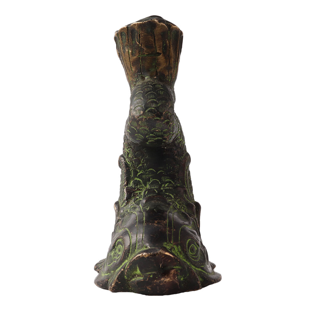 • Brass Koi Fish Statue Candle Holder In Green Finish