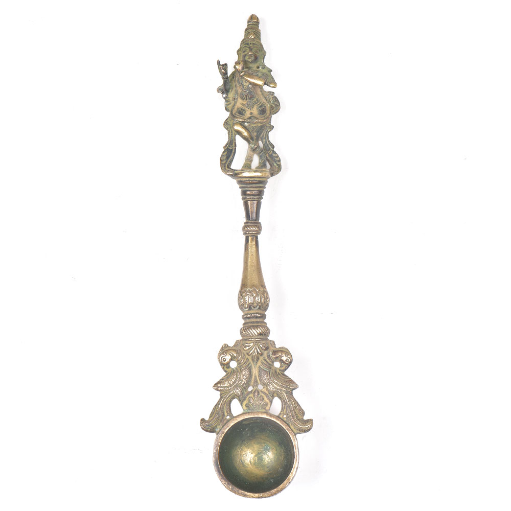 • Brass Krishna Figurine Havan Spoon