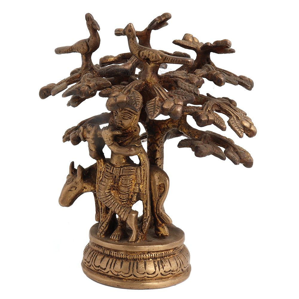 Brass Krishna Statue Cow Under Kadamba Tree