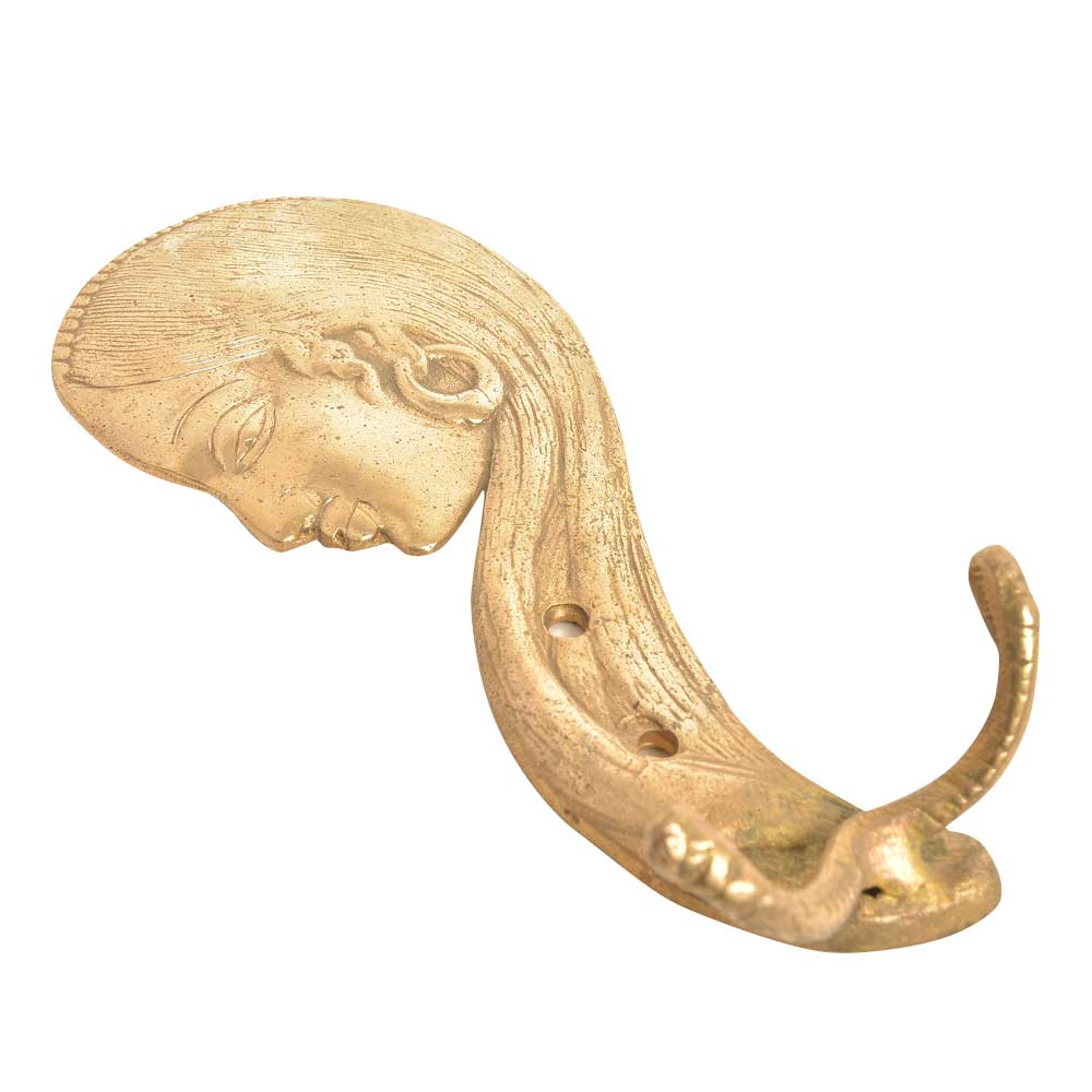 Tribal Woman Face Brass Metal Hook with Patina. When Put on Wall or Cabinet It is An Art in Itself. Its A Mix of French and English Design. Suitable for Your Kitchen, Cupboard, Rooms, Cabinets, Almirahs, Bathrooms, Doors, Etc.