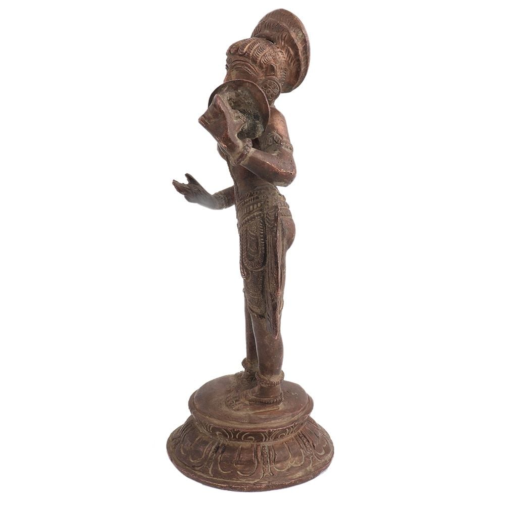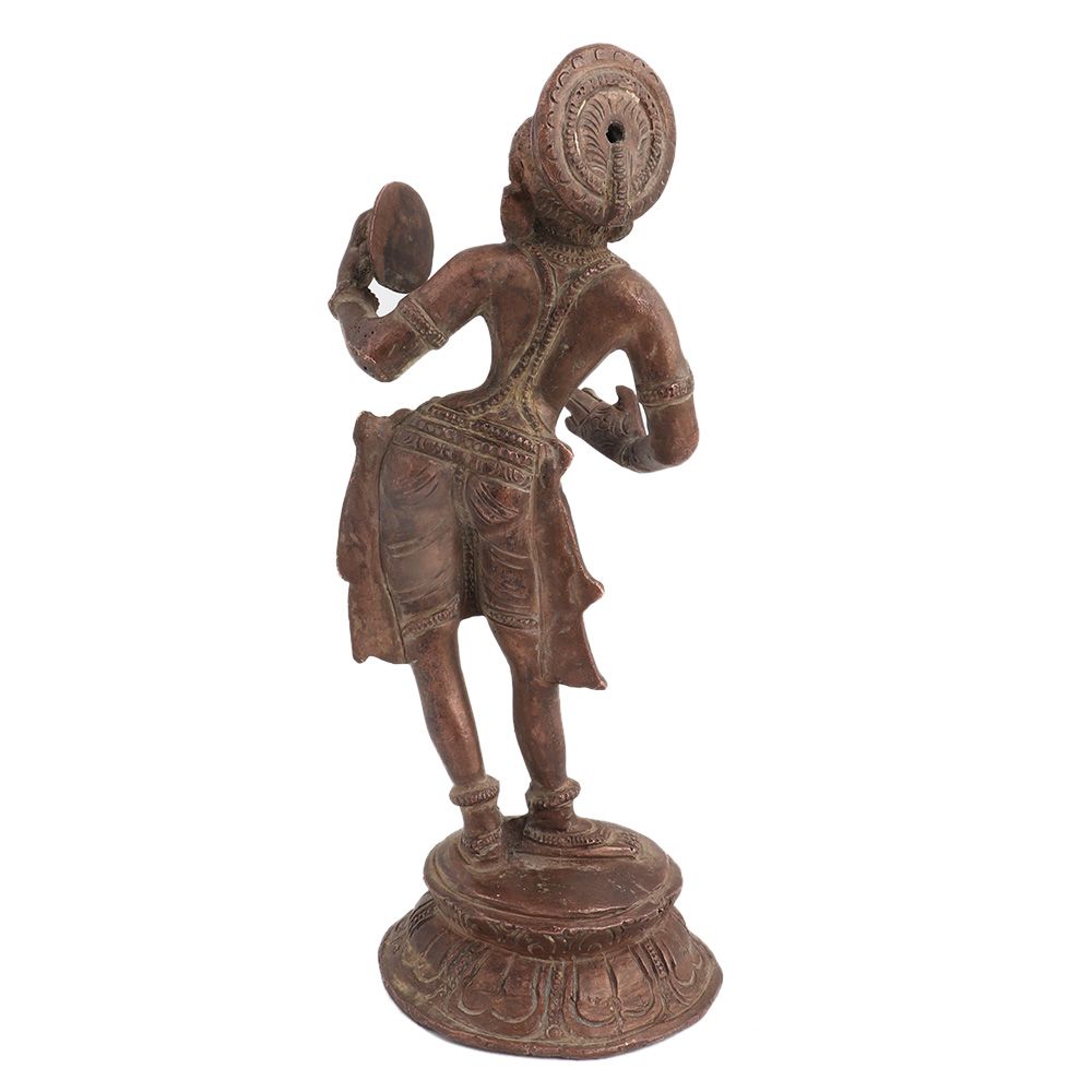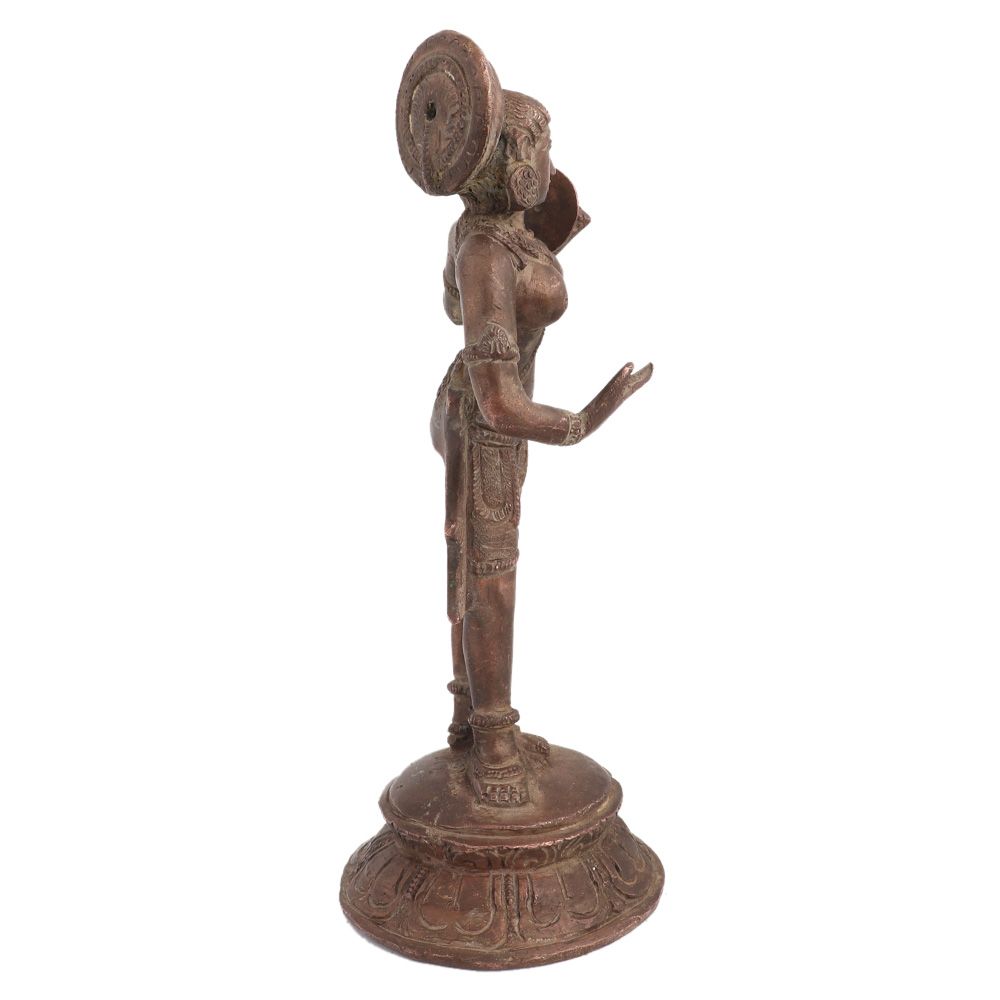 This is a handmade brass statue of a dancing lady looking into a hand held mirror on a high raised lotus platform .Place it on the display or used as a gift for friends and relatives .Diwali Gift, New year gift. Souvenir, wedding gift and a great gift for your near and dear ones.