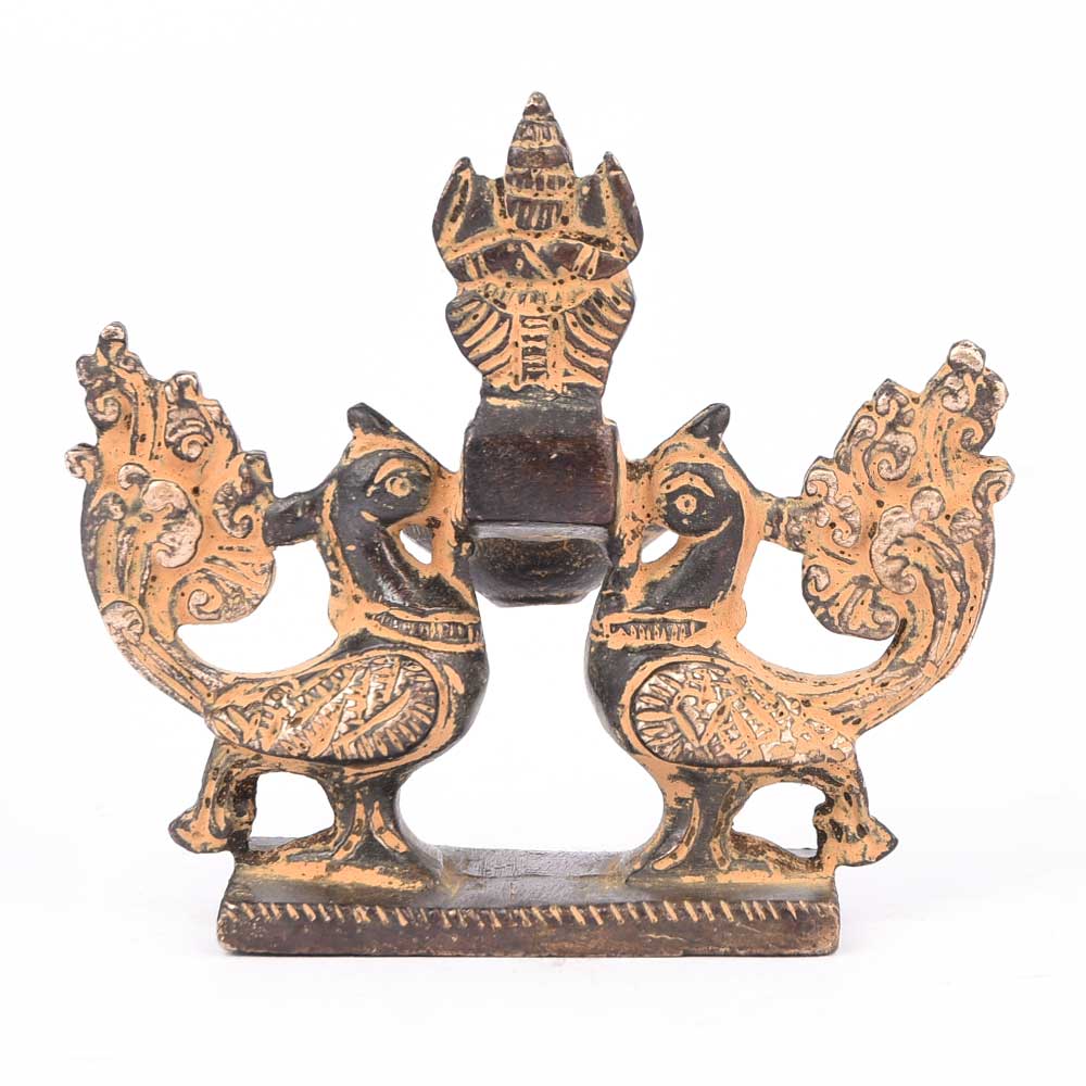 Brass Lamp of Two Peacock Holding Lord Ganesh At Centre