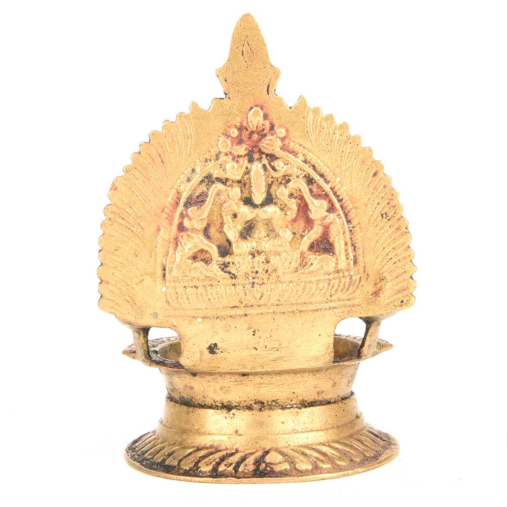 Brass Lamp with a Depiction of Goddess Lakshmi Embossed in It