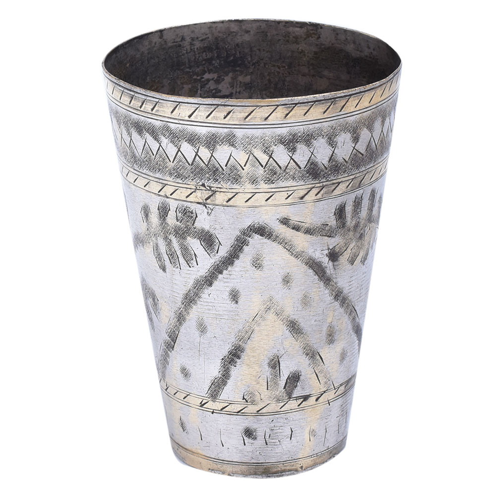 Brass Lassi Glass Carved With Leaf and Arch Design