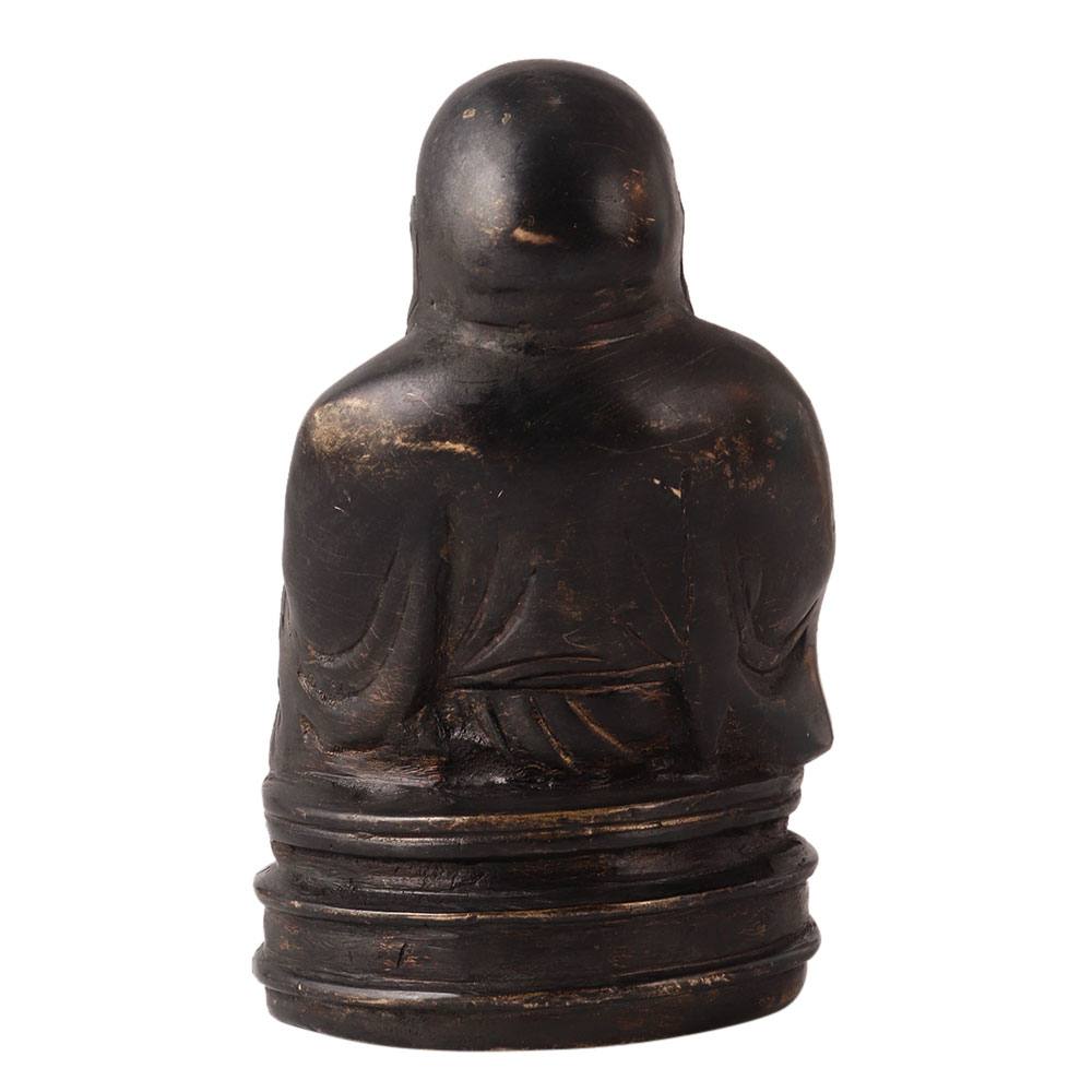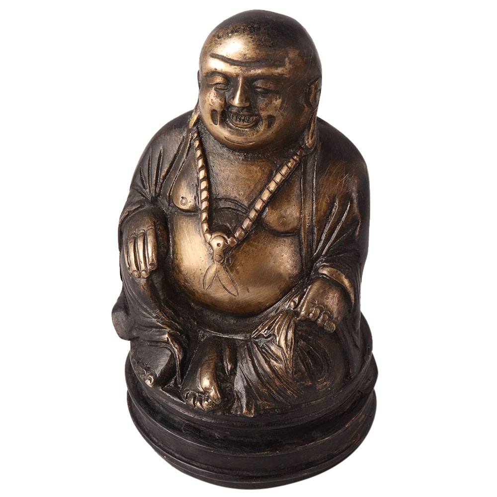 A brass statue of the laughing Buddha in elegant black and brown finish that will add an aesthetic touch to your home, restaurant, office or hotel interior. This handcrafted statue of the happy Buddha will bring prosperity, good luck and good fortune to your life when placed in a southeastern direction in your home. With its antique finish, this garnished artwork will spread positive energy and happiness. It is often placed in restaurants and stores as it is considered a good luck charm. Housewarming, thanksgiving, anniversary, birthday or wedding gift for your loved ones.