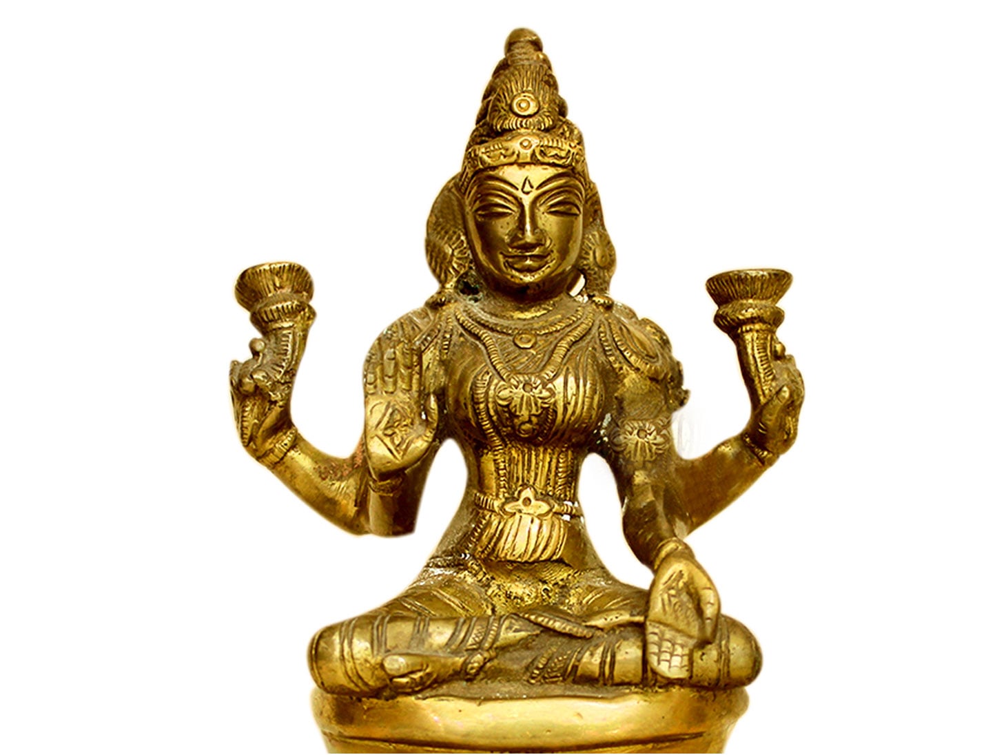 . Brass Laxmi. Finely Done to Get That Peaceful Expression on the Face. Brings Instant Peace At a Moment Glance. Fills the Atmosphere with Peace and Positive Energy. Handmade. It is More Than a Statement Piece.