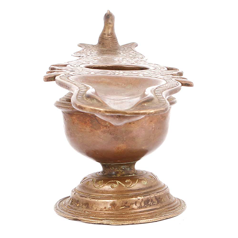 Brass Leaf Shaped Sacred Lamp with Oil Reservoir