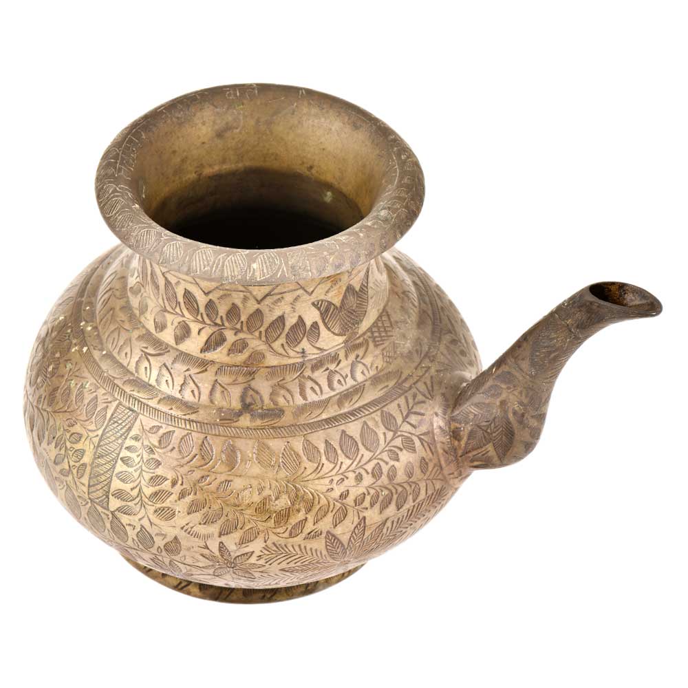 • Brass Leafy Engraved Copper Holy Water Pot With A Stout
