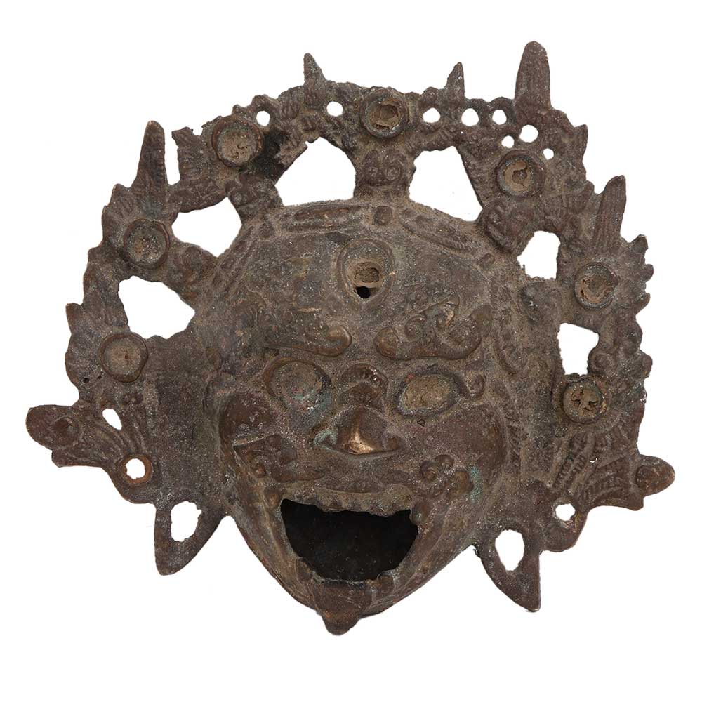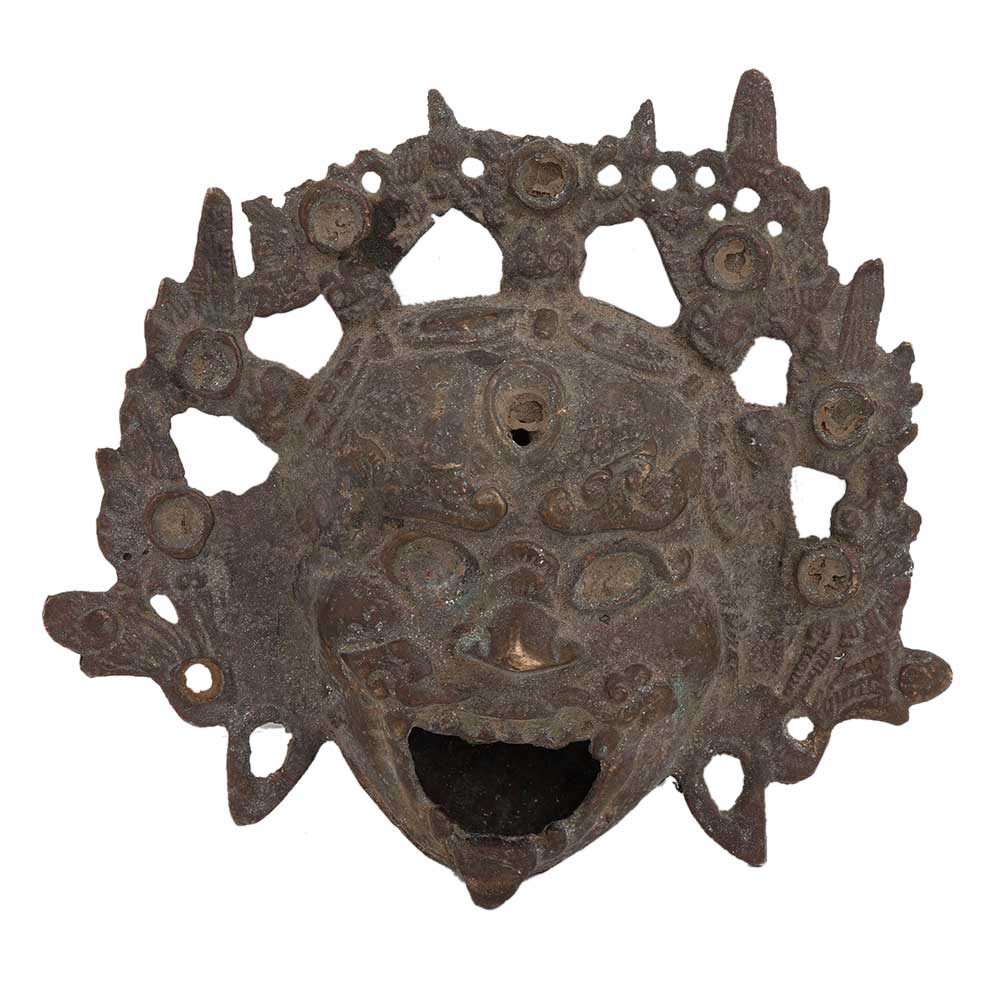 • Brass Lion Face Chinese God With ornate Crown Wall Hanging