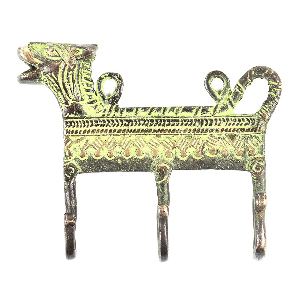 Majestic Pair of Engraved Lion Face Design Brass Hooks with Indian Motifs Displaying the Intricate Craftsmanship of the Skilled Artisans of Northern India. these can be Nailed Onto Any Surface with the Help of 2 Screws for Hanging Your Hats, Umbrellas, Light Coats, Caps, Scarves, and Other Such Pieces in Your Home or Work Place.