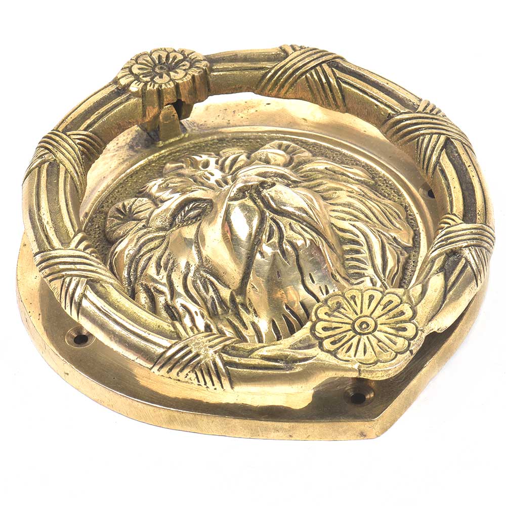 Indianshelf.com for bulk/wholesale orders.Indianshelf.us for personal purchases.The Brass Lion Head with Flower Crown Door Knocker is a captivating fusion of power and elegance. Featuring the noble lion, symbolizing strength and courage, adorned with a delicate flower crown, this piece brings a regal touch to your doorstep. Handcrafted from premium brass, it offers both function and artistry, making it a bold yet sophisticated statement piece for any home entrance. Whether for a classic or contemporary design, this door knocker will stand as a unique greeting for all who visit.