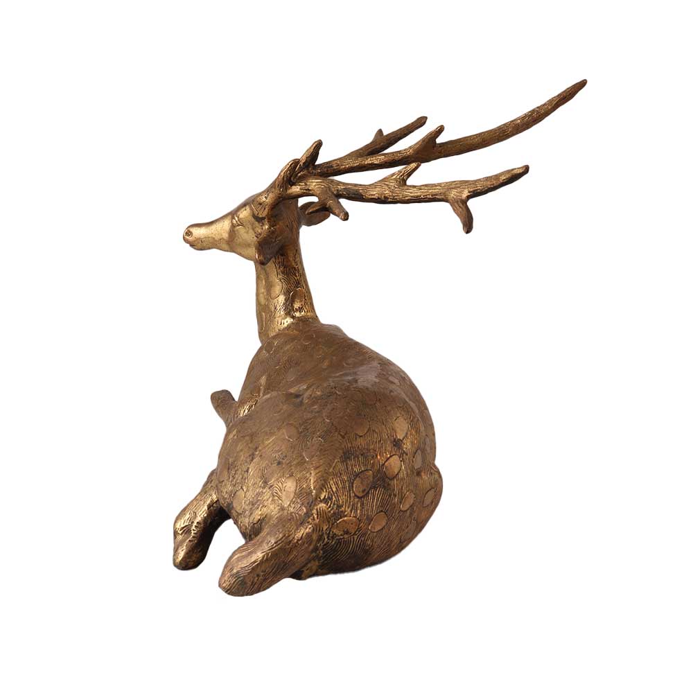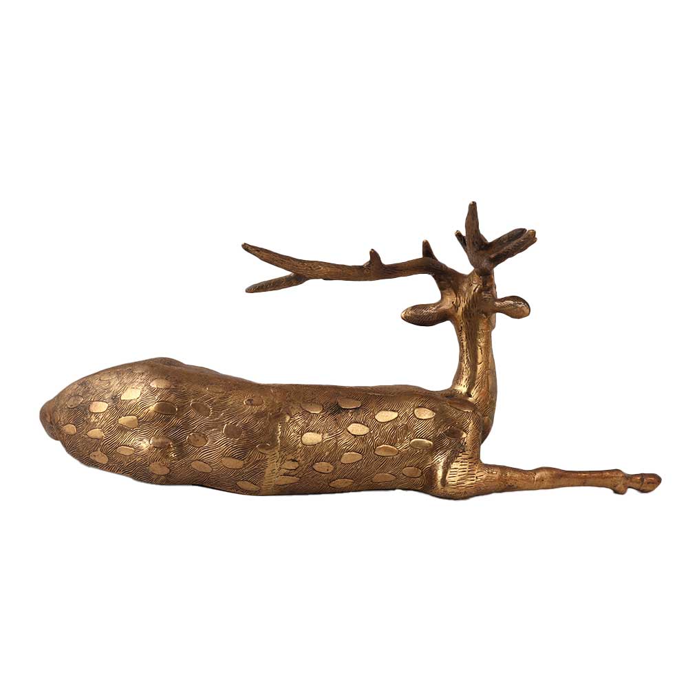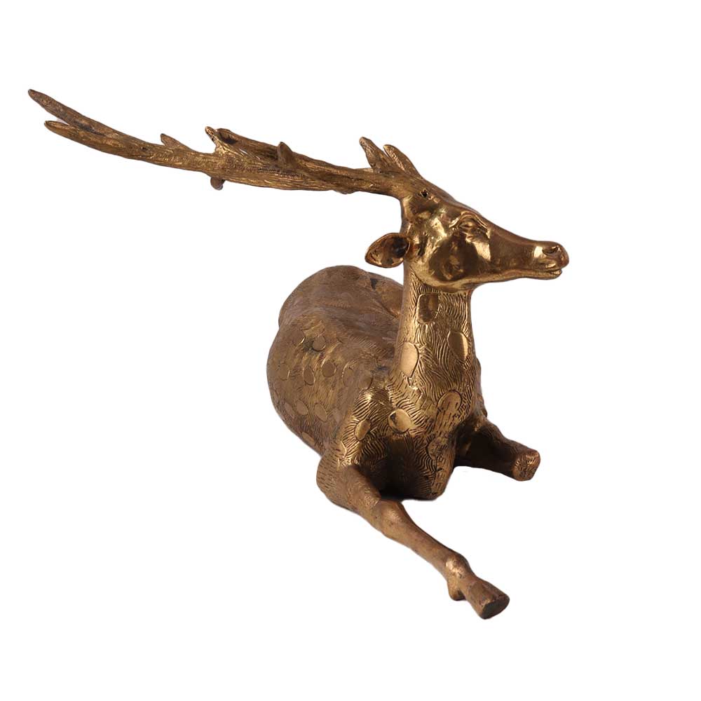 The Brass long Horn laying Deer statue is a beautiful and elegant hand sculpture that is perfect for adding a touch of rustic charm to any room. A statue made of high-quality brass and features a detailed design of a laying deer with long horns. The brass material is durable and long-lasting, making it perfect for indoor or outdoor use. The statue is great as a decorative piece that can be placed on a table, shelf, or mantel. It can also be used as a garden statue, adding a touch of nature to any outdoor space. The statue is lightweight, making it easy to move and place around the home. The brass material gives the statue a rustic and vintage look that is perfect for those who love country and antique styles. Overall, the Brass Long Horn Laying Deer carving sculpture is a beautiful and unique statue that will add a touch of rustic charm to any room.