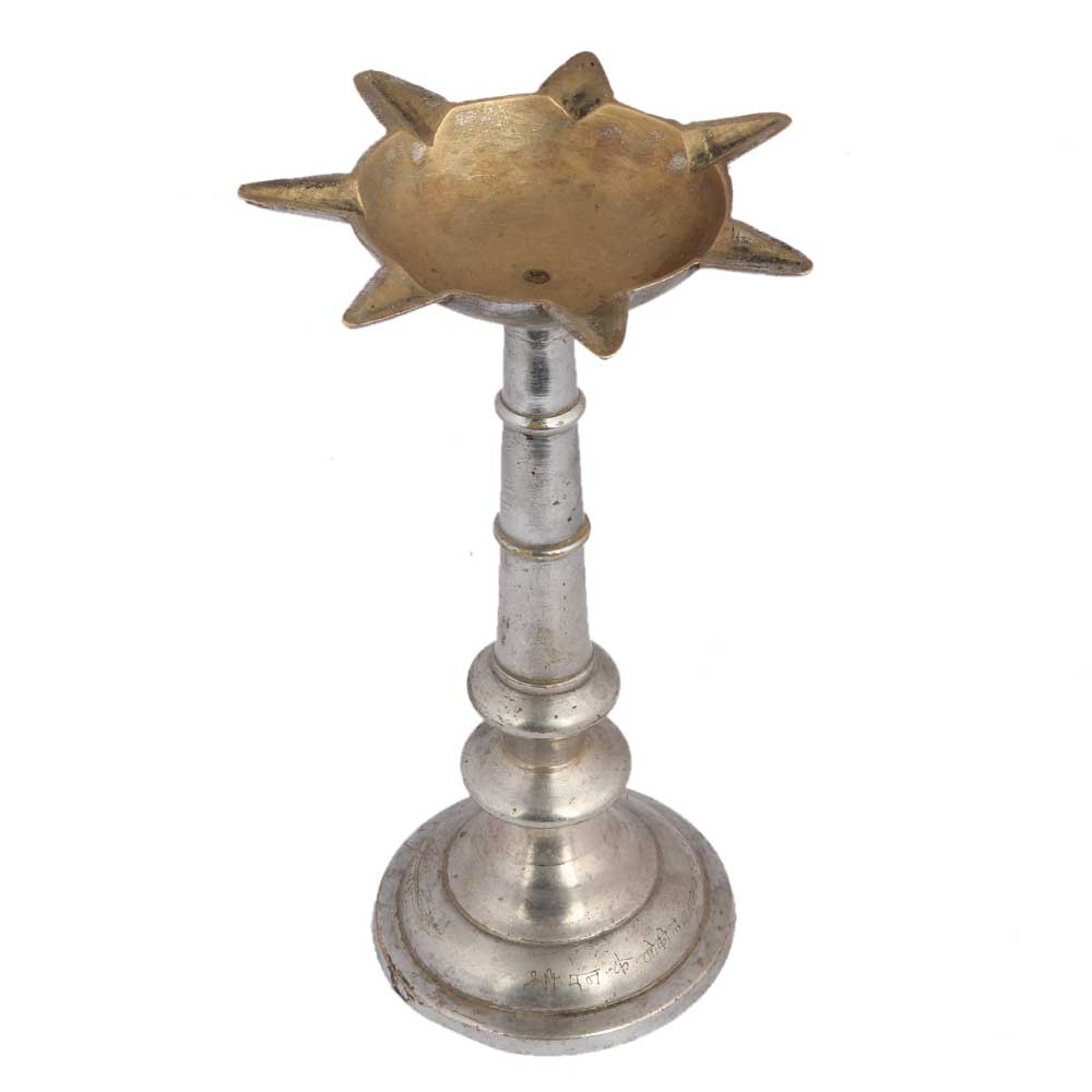 Brass Long Seven Wicks Oil Lamp With Silver Finish