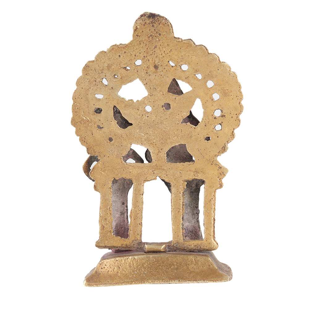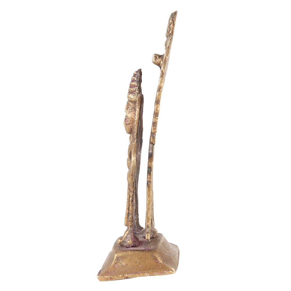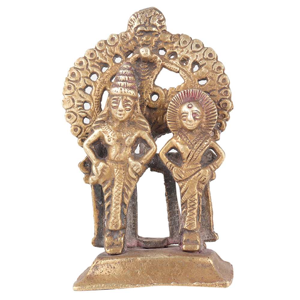 Own this piece of vintage master artistry to adorn your house and give you plenty of serenity and happiness. Lord Narayan (Vishnu) is the universe's sustainer, and his spouse Goddess Lakshmi is the Goddess of wealth. Place this brass statue in your pooja platform, worship room, business cabin, or lounge area to seek the benefits of Vishnu Laxmi.