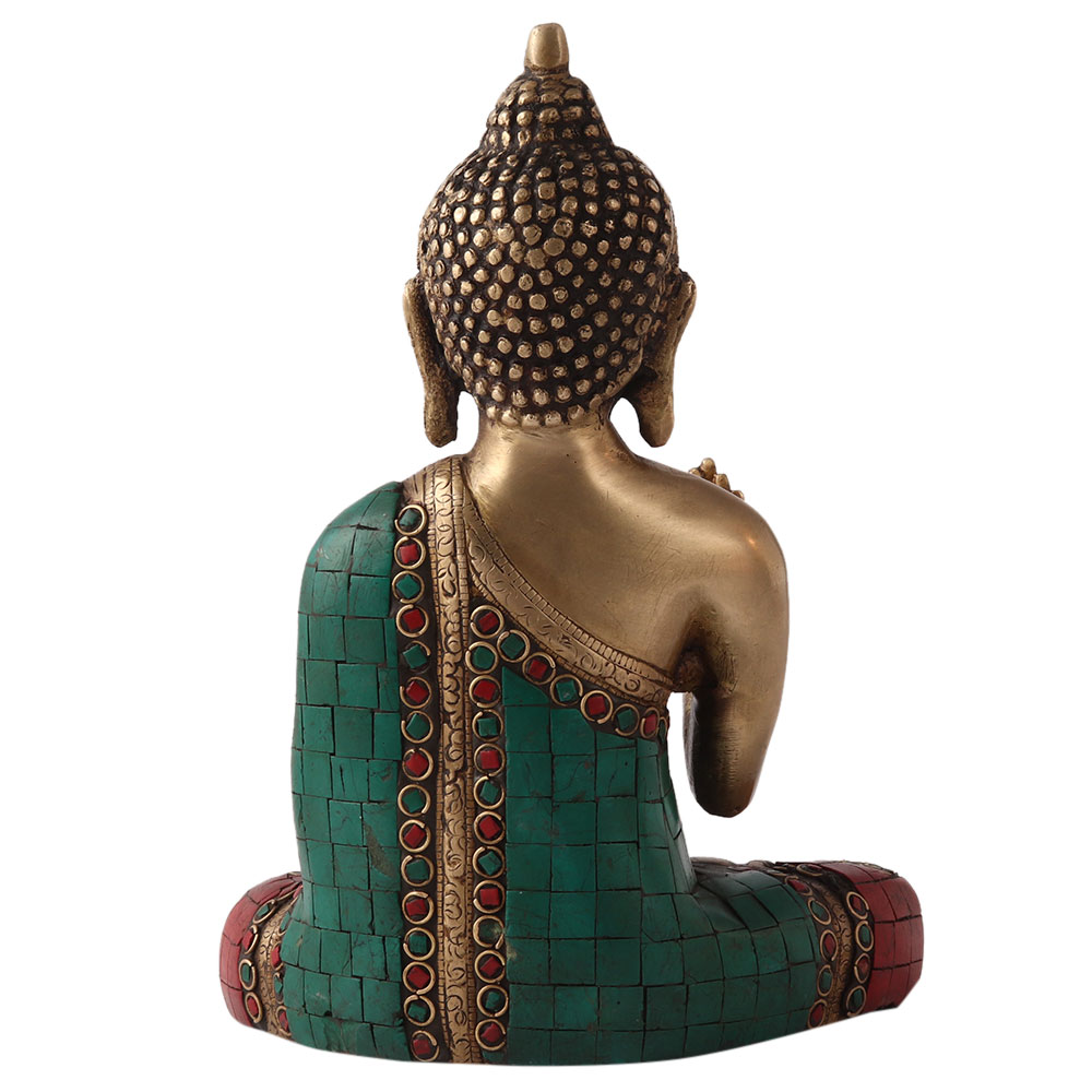 Brass Lord Buddha Statue in Colourful Stone Work