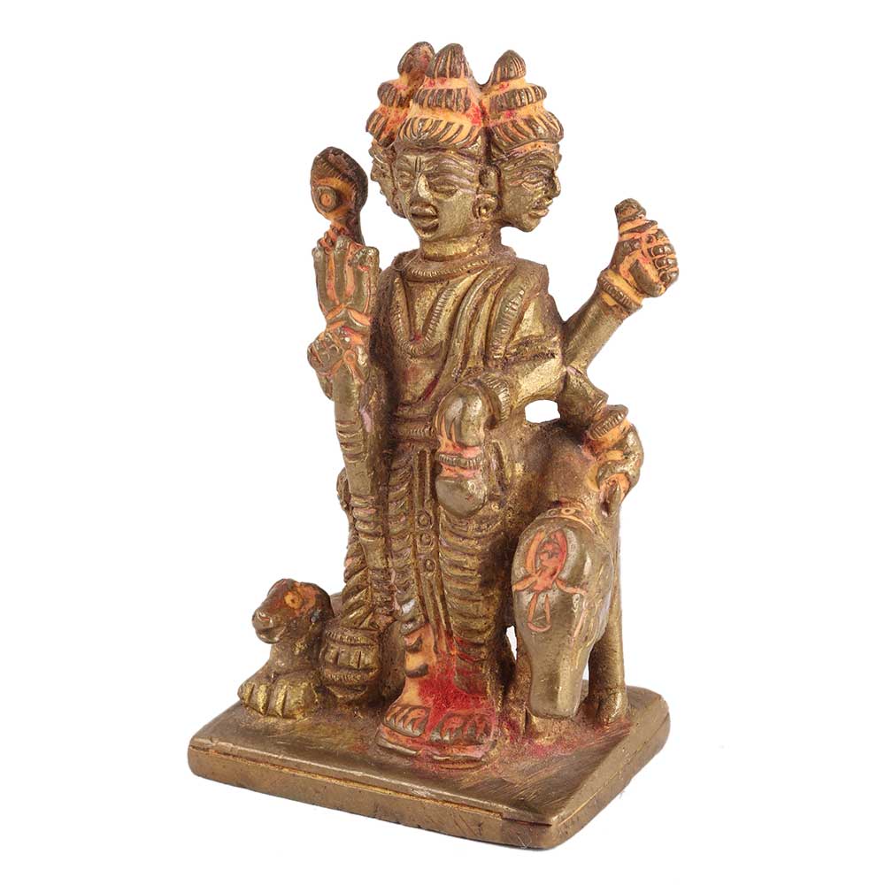 In Hinduism, the Trimurti is a trinity of omnipotent divinity in which the cosmic functions of creation, preservation, and damage are personified as a triad of deities, usually Brahma the creator, Vishnu the preserver, and Shiva the destroyer/regenerator. Dattatreya is the name given to an avatar who embodies all three deities of the Trimurti. Handmade cultural, religious gift showpiece/idol for a Hindu festival. Place it on  home mandir, office table, or store shelf.