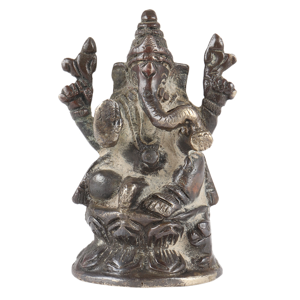 Lotus brass is intricately carved and extremely detailed Ganesha Idol is carefully carved by highly experienced Indian artisans and displays Lord Ganesha's auspicious sculpture for a safe and tranquil environment. Suitable for various types of interior design. Perfect for presenting on any occasion.