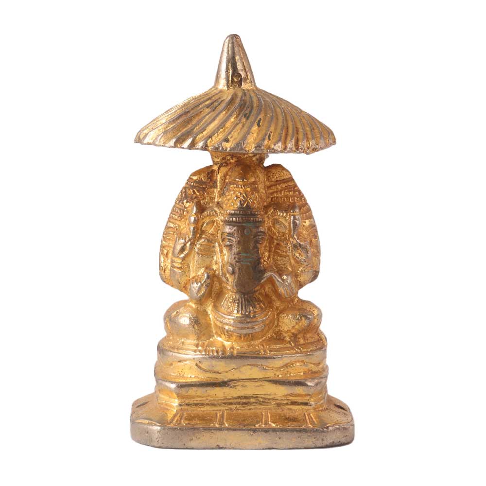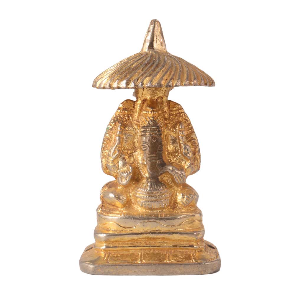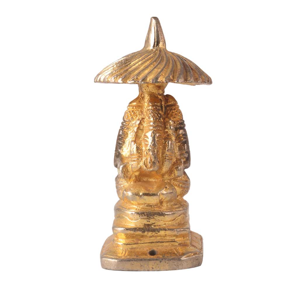 Decorate your home with a shiny gold and silver brass statue of Lord Ganesha. This brass statue is made purely of brass with intricate details. Lord Ganesh statue with an umbrella or chatra over his head. Lord Ganesha is one of the most important deities in Hinduism who is worshipped before any event begins. Bring this statue of Idol Ganesha in your home or office to bring prosperity, luck and fortune in your life. Place this statue in prayer room or temple for worship. An ideal gift for any auspicious, festive or special occasion for your family, friends and relatives.