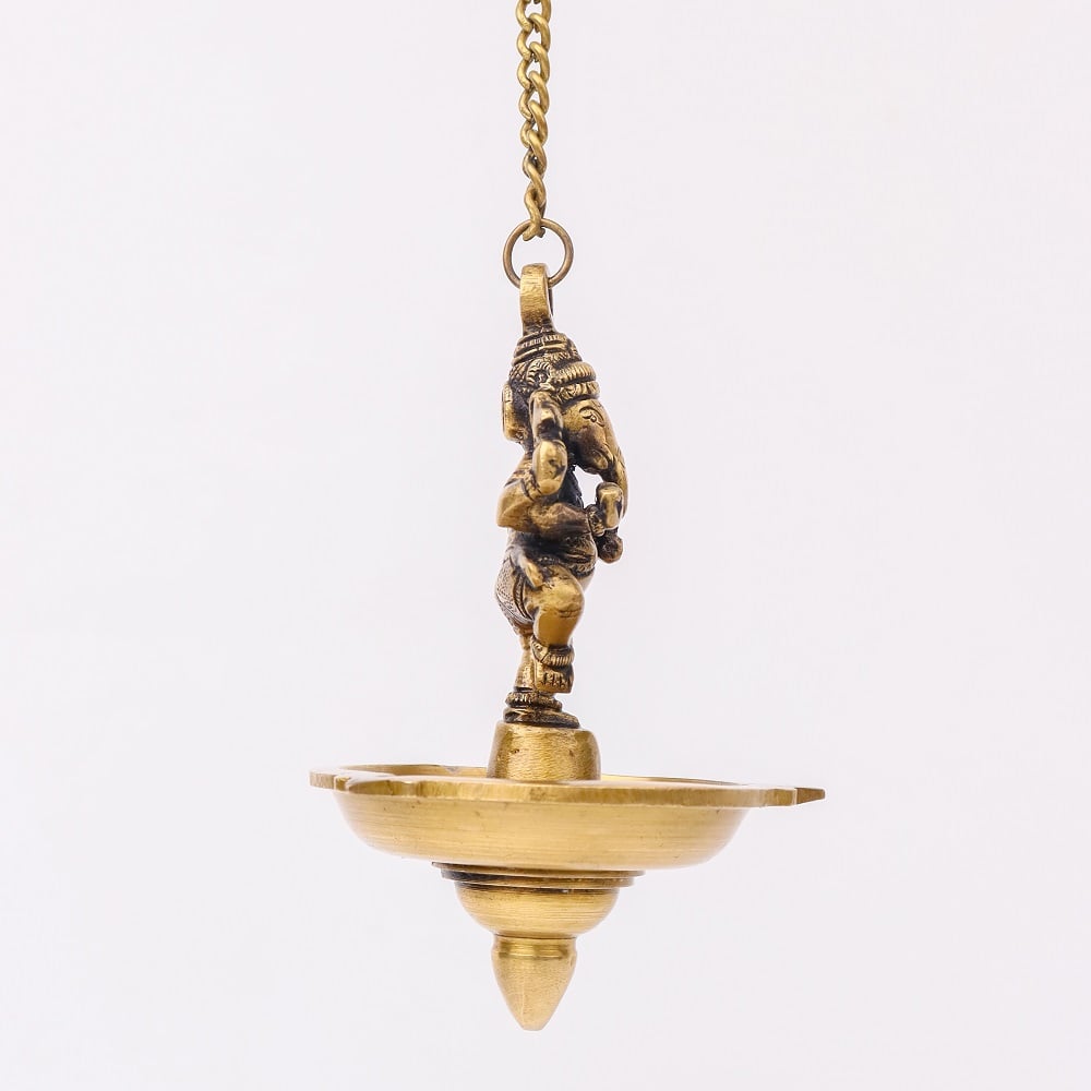 Brass Lord Ganesha With Hanging Lamp Or Diya