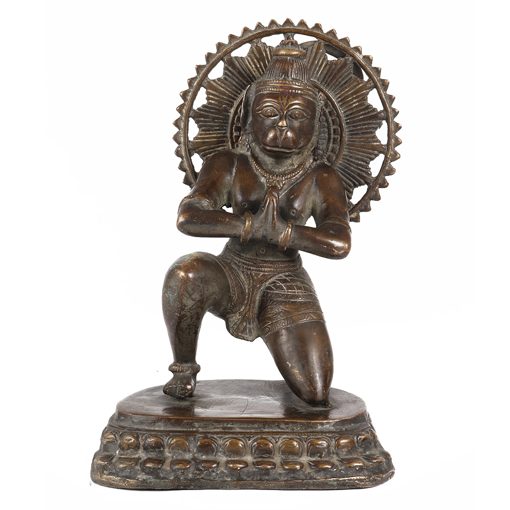 Lord Hanuman sits in front of Rama, hands folded in reverence and respect to Lord Rama. It is an excellent desktop and gift item. Hanuman is a Hindu god who is a devoted follower of Lord Rama. He plays an important role in the Indian epic Ramayana. He is known as a 'Vaanar' (monkey-like humanoid). He is the son of Lord Vayu (Air), also known as 'Pavan Putra' (son of air), and a manifestation of Lord Shiva, the slayer of all misdeeds.