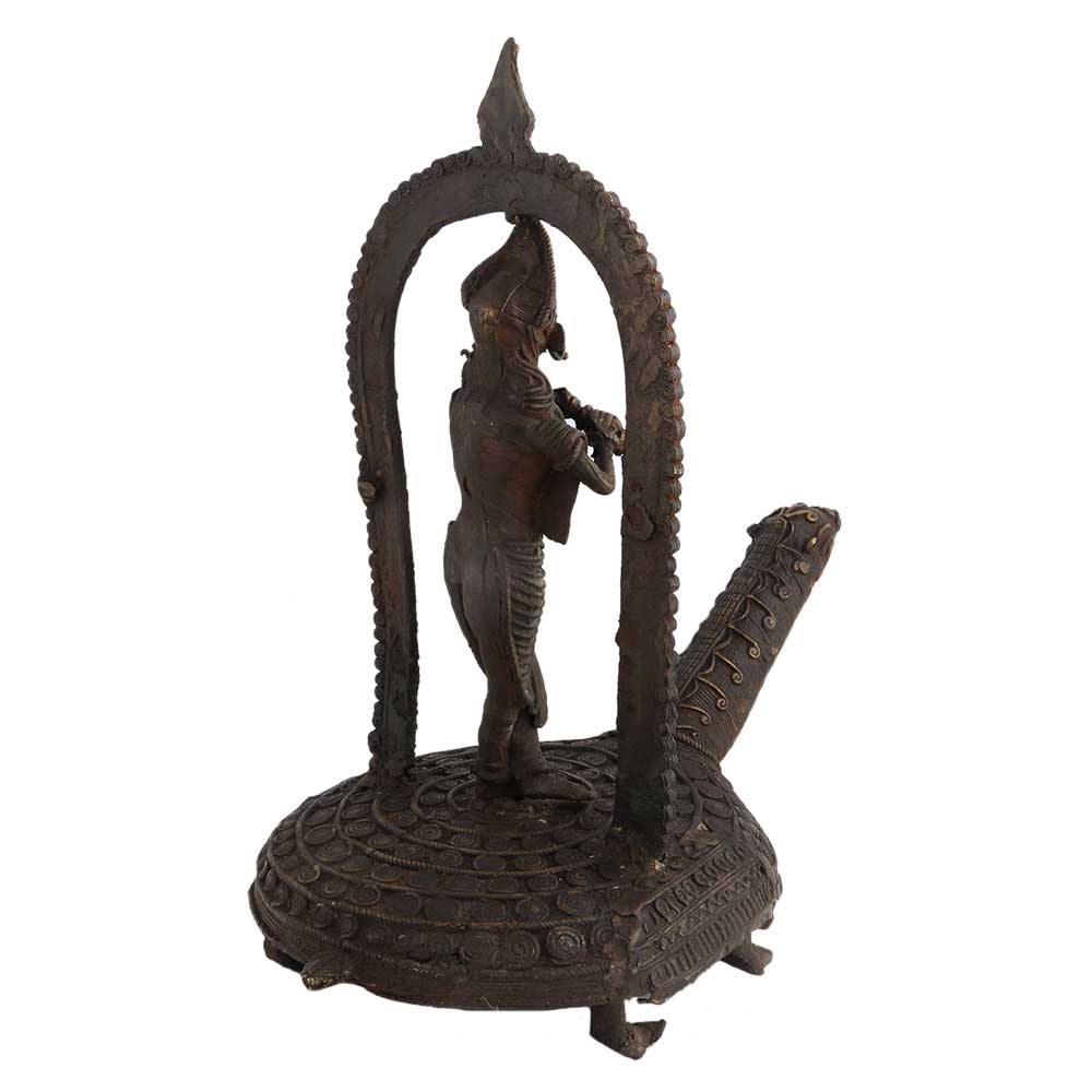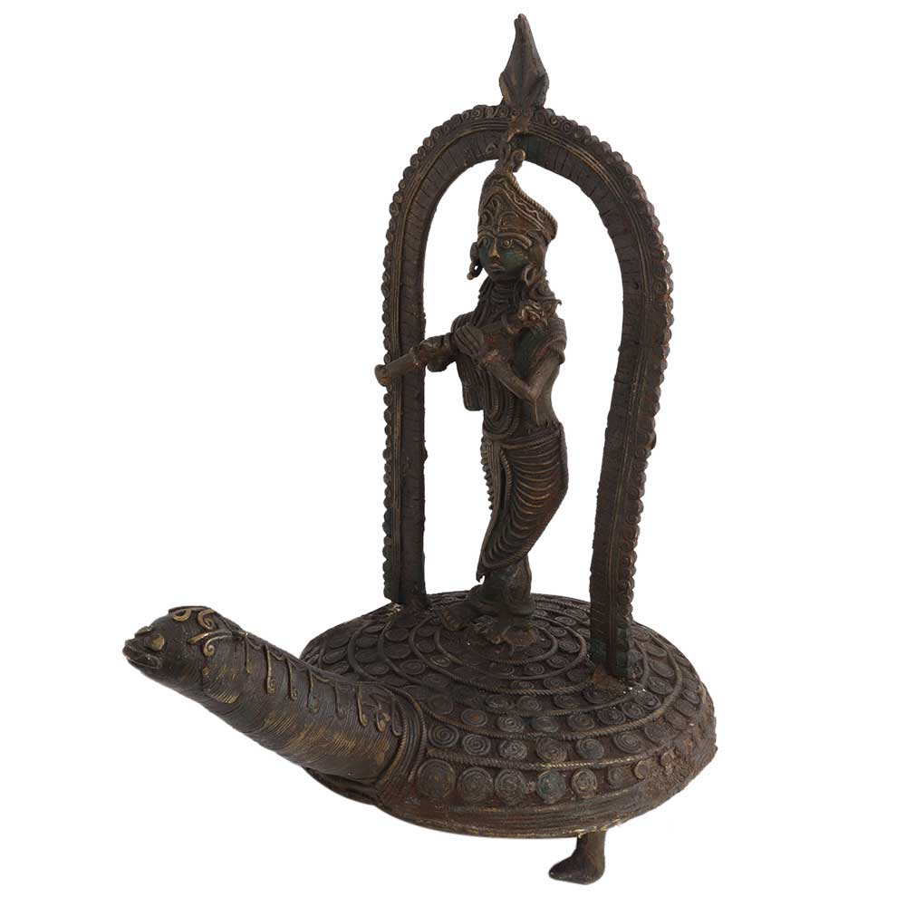 • Brass Lord Krishna Statue Standing On Turtle Playing Flute