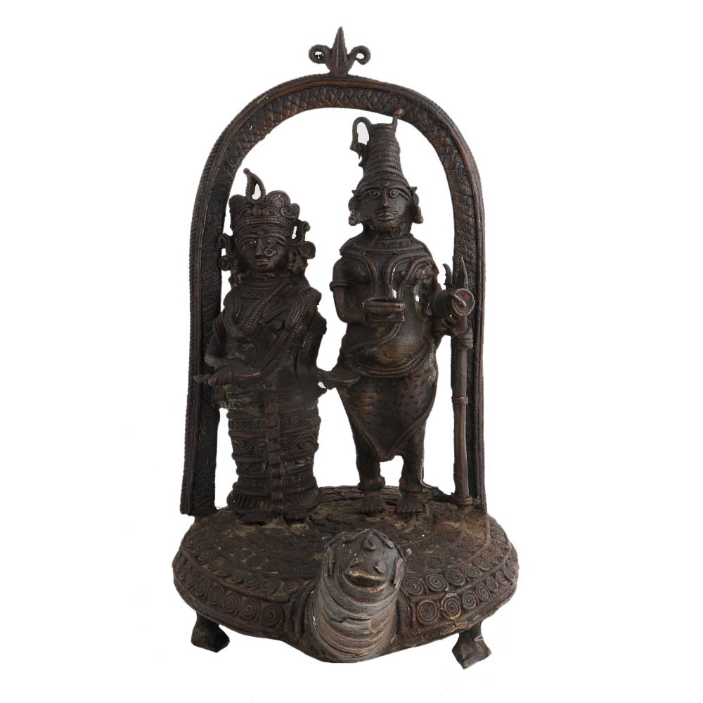 Brass Lord Shiva With Parvati Tribal Art Turtle can be used as business gift and displayed in Indian restaurants and counter spaces in retail stores. Diwali gift, new year gift, Christmas gift and house warming gift for your near and dear one.