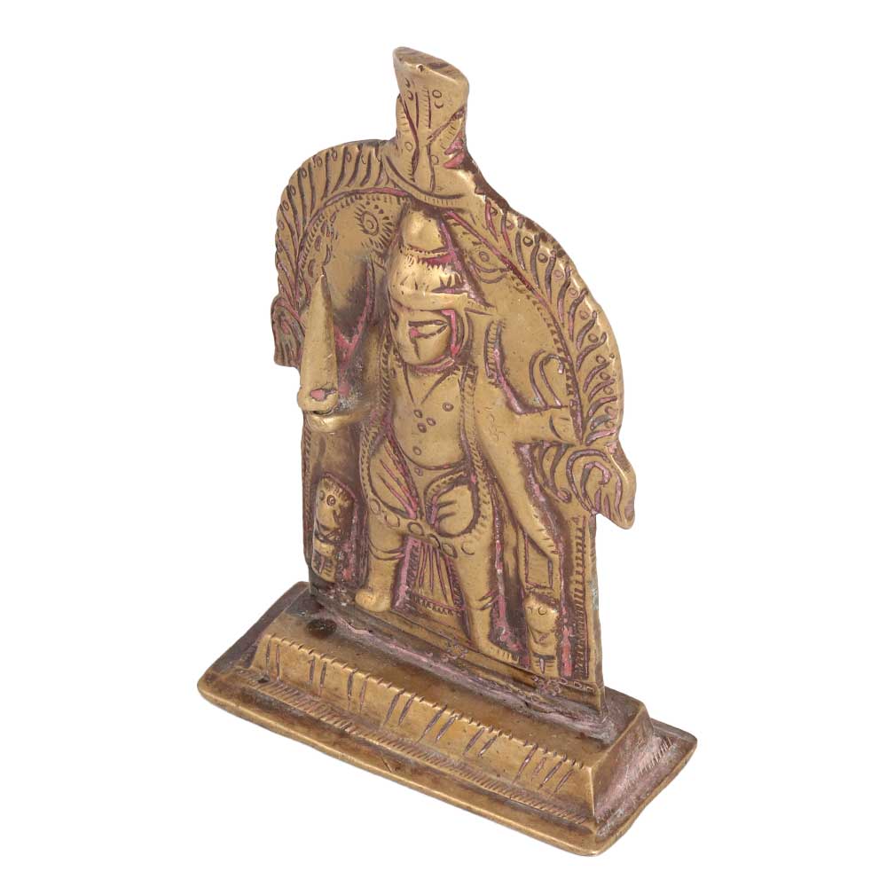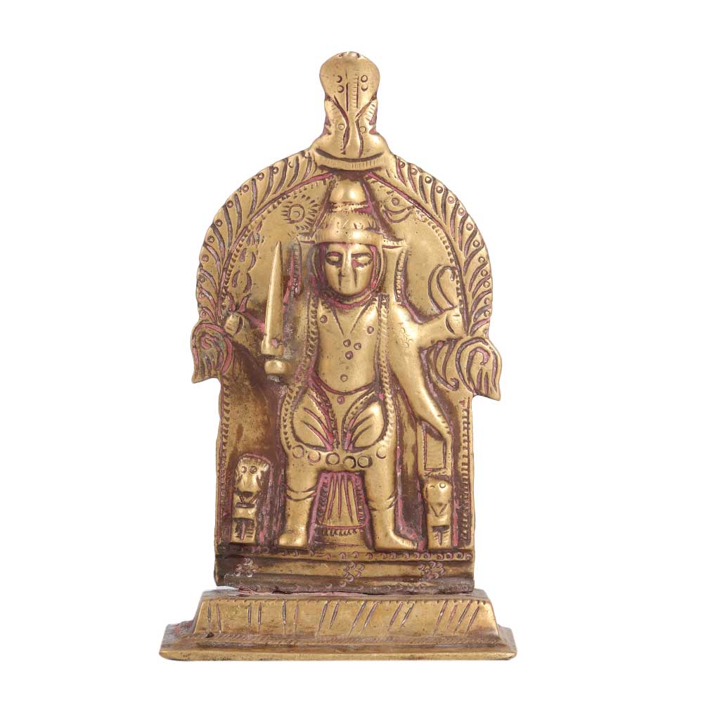 A brass statue of Lord Veerabhadra also pronounced as Virabhadra, Veerabathira and Veerabathiran. Buy this brass statue online depicting Lord Virabhadra, the fierce form of the Hindu God Lord Shiva. It is made of high quality brass by skilled Indian craftsmen with their hands, which leaves a remarkable impression on the interior decoration. Place this statue in the prayer room or temple for morning and evening prayers. This god statue is made with intricate details to add an ethnic flair to interiors. A promising gift for housewarming, anniversary, farewell, corporate party, wedding, birthday or festive occasion for your friends, family or relatives to make their day.
