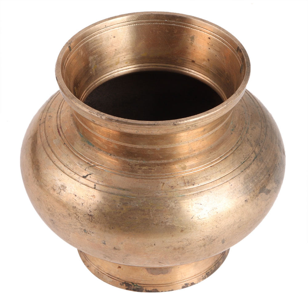 Hand made old traditional brass water pot for worship, it has been used for religious purposes in homes and temples, marriage decoration, stage decoration, and housewarming gift for close friends and family.