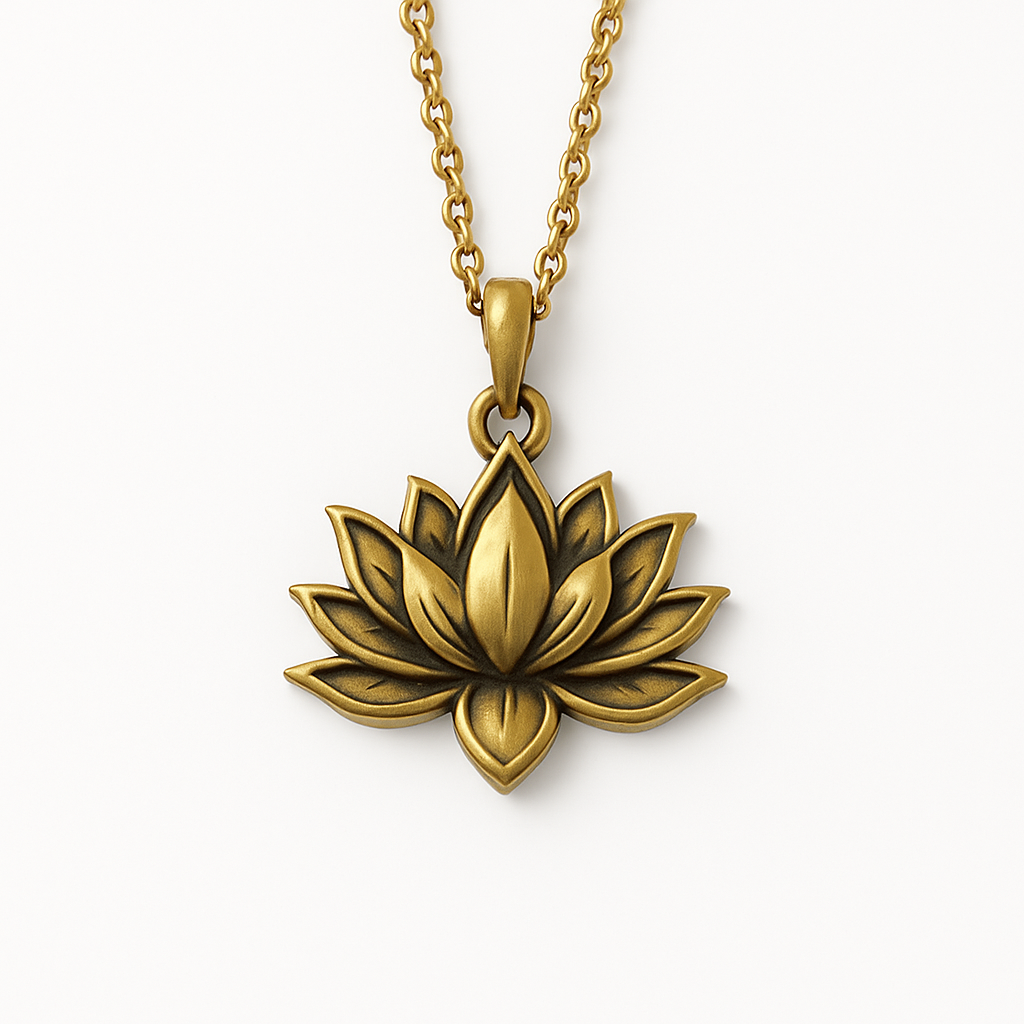 This Brass Lotus Pendant Necklace brings spiritual elegance and earthy charm together in a beautifully handcrafted design. Made entirely from raw, unplated brass, the necklace showcases a delicately shaped lotus—symbol of purity, growth, and inner awakening. The natural brass surface develops a soft patina over time, adding character and depth. Measuring 18 inches, it drapes gracefully at the neckline, making it a meaningful accessory for everyday wear or mindful styling.