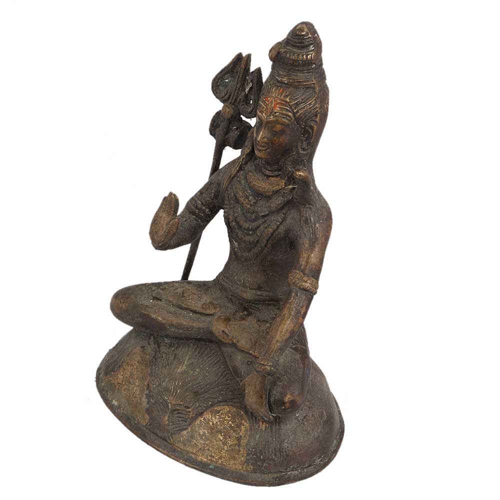 • Brass Mahakal Shiva Meditating Statue On Lion Base