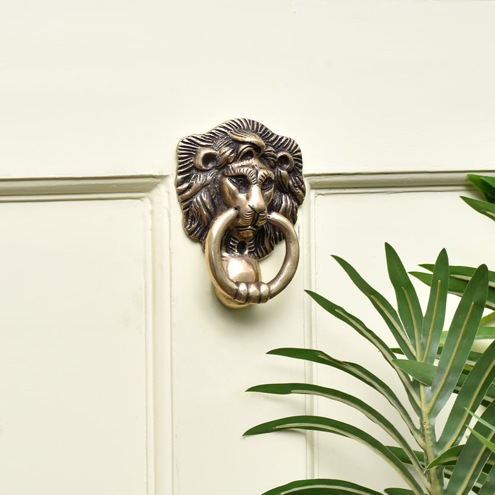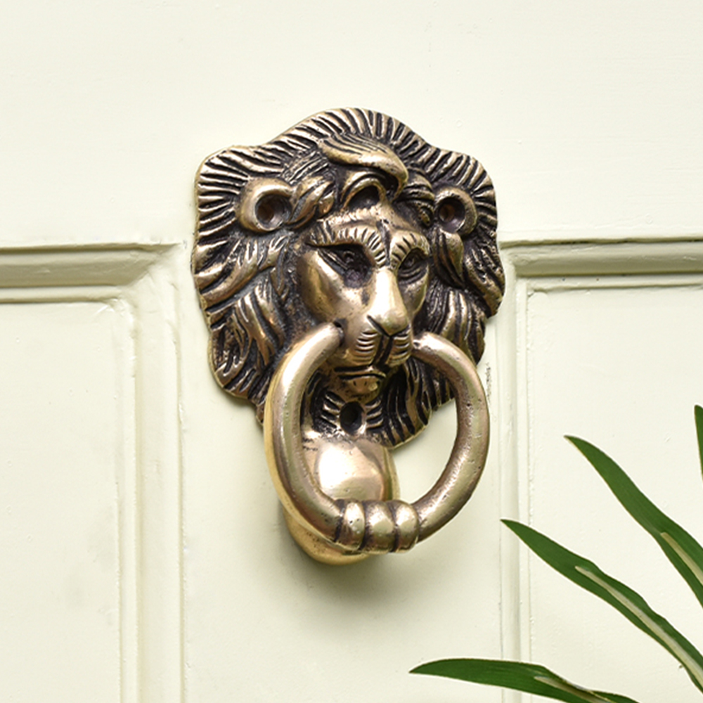 Indianshelf.com for bulk/wholesale orders.Indianshelf.us for personal purchases.Welcome guests with the grandeur and elegance of the Brass Majestic Lion Door Knocker. This intricately designed knocker features a stunning lion’s head, symbolizing strength, courage, and regality. Made from high-quality brass with an elegant finish, this door knocker will make a bold statement on any entryway. Whether you have a classic or contemporary home, this majestic piece is sure to add a royal touch to your doors.
