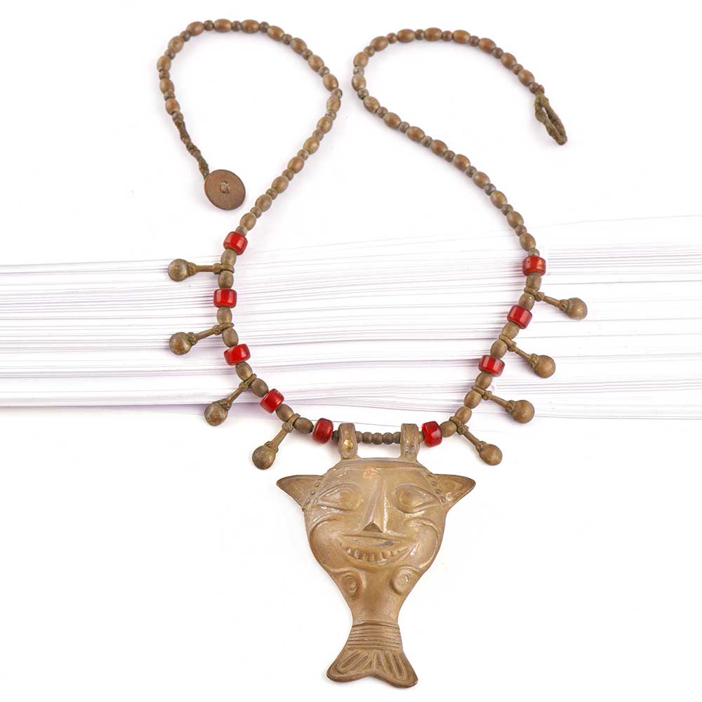 This Brass Mask Pendant on Brass Red Bead Necklace is a mesmerizing tribute to India’s tribal artistry and ancient symbolism. Handcrafted from antique-finished brass, the mask pendant represents protection, wisdom, and identity — a timeless motif in traditional tribal culture. Strung with rich red brass beads that radiate passion and vitality, this necklace combines heritage and craftsmanship into a powerful statement piece that bridges the worlds of art and adornment.