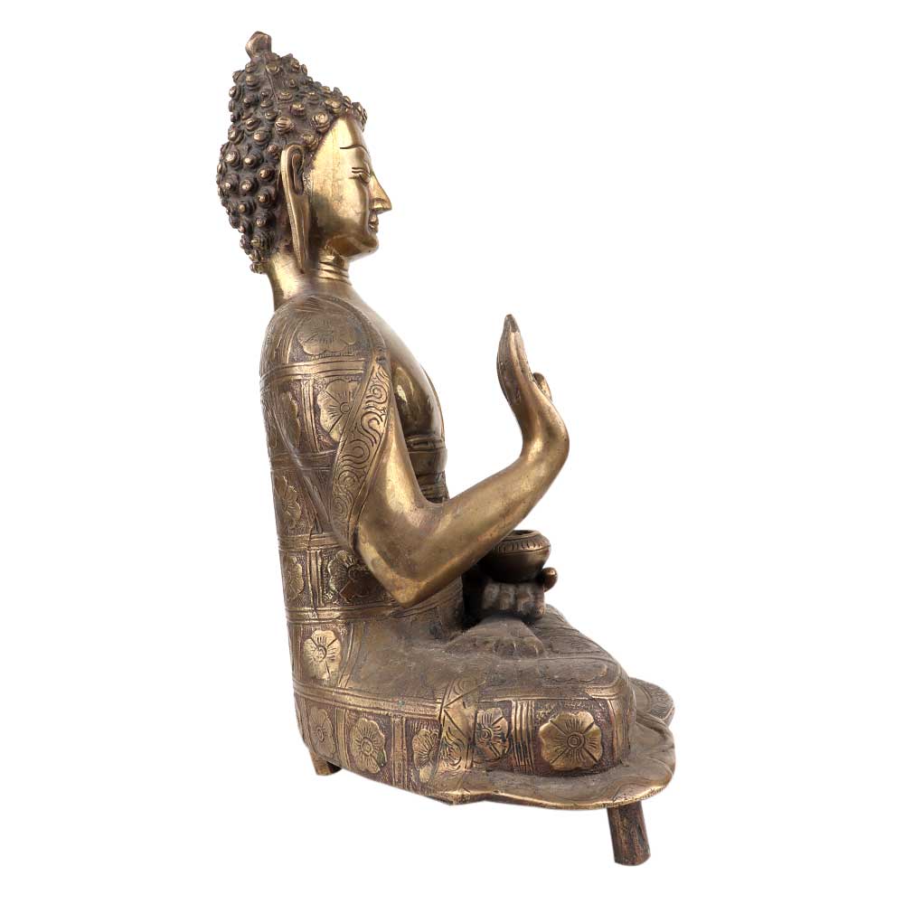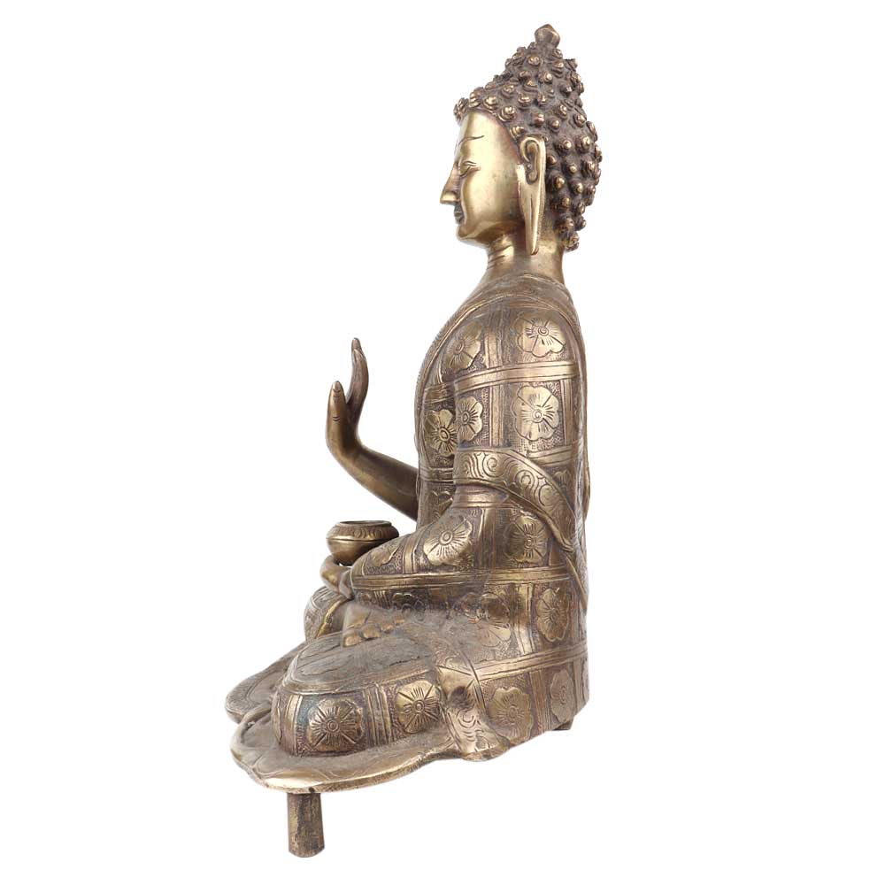 Brass Meditating Blessing Buddha With Kalash In One Hand