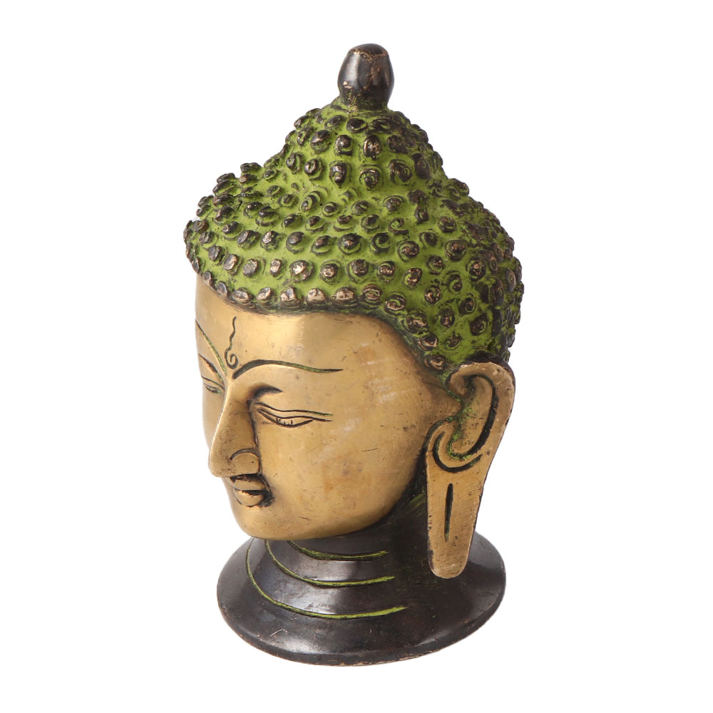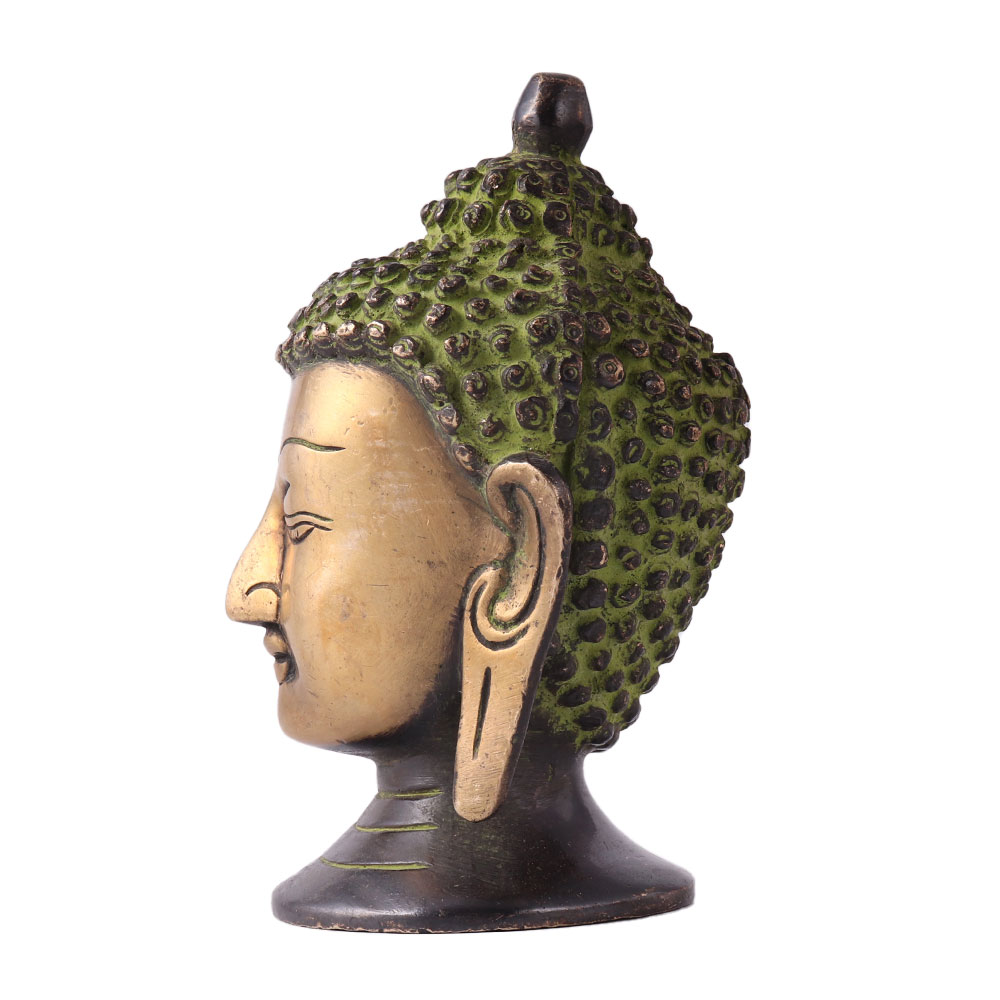 This gentle look of Buddha Head Statue will enhance your home and living room. The word Buddha literally means "awakened one" or "enlightened one." This Buddha statue represents peace and harmony. "Buddha" is also used as a title for the first awakened being in an era; in most Buddhist traditions, Siddhartha Gautama is regarded as the Supreme Buddha of our time. Buddha attracts all positive aspects such as blessing, wealth, success, career, good health, and children. It comes with a green finish.