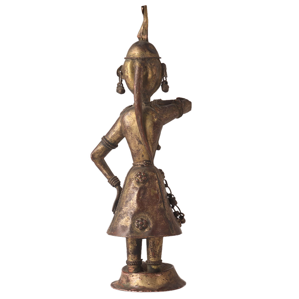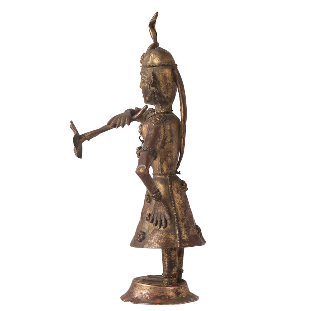 Buy Brass Statue online of a hindu brass metal musician Dancer figurine. The statues are a decorative piece depicting an Indian dancer or musician. It is made of brass, a metal known for its durability and rich appearance. This figurine showcases the intricate details and cultural heritage of India through its intricate design and vibrant appearance. The figurine represents the rich musical and dance traditions of Hindu culture and is a symbol of art and beauty. Handmade brass statues make a great addition to any collection of ethnic or musical memorabilia, or as a decorative piece in any home or office. The intricate craftsmanship and attention to detail ensure that this figurine will be treasured for years to come, making it a timeless piece that celebrates the cultural heritage of India.