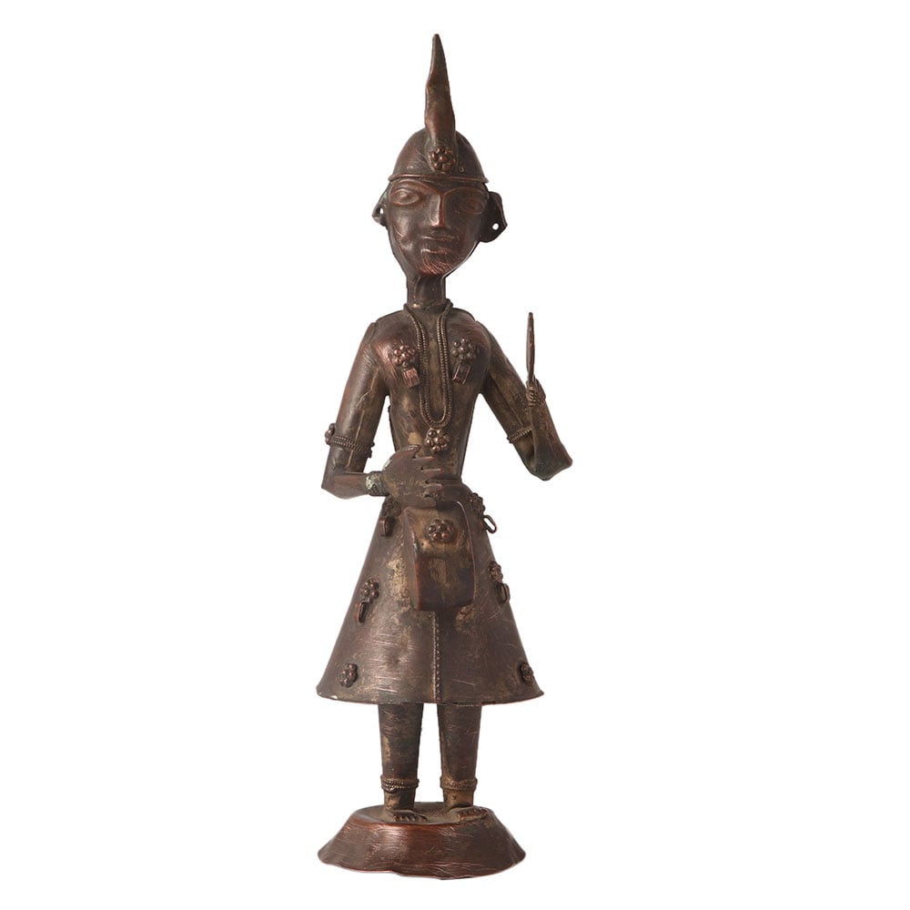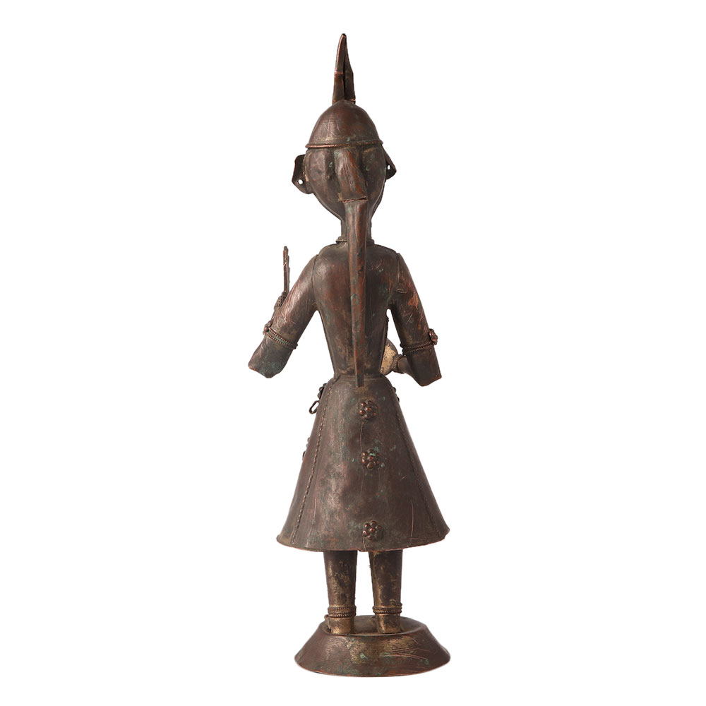 Vintage brass metal musician statues art from India are decorative pieces that are highly sought after by art collectors and enthusiasts. These miniature sculpture statues are made by skilled artisans using traditional techniques and depict various musicians playing instruments such as sitars, tablas, and flutes. The intricate detailing, use of vibrant colors and rich cultural significance of these statues make them a great addition to any collection. These vintage brass metal musician statues are often considered as a symbol of wealth, prosperity, and good luck and are displayed in homes and offices for aesthetic appeal and to bring positive energy. These statue décor are made from durable materials such as brass and are built to last for generations to come.