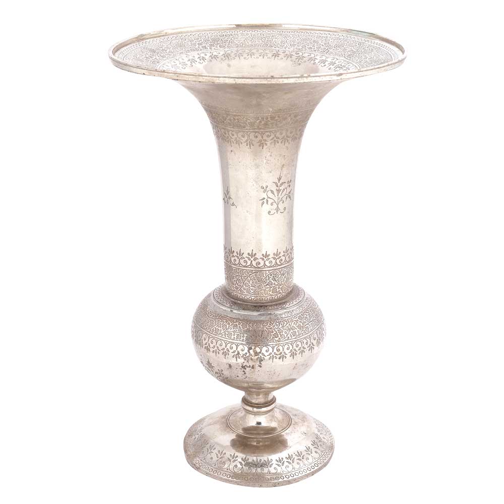 • Brass Metal Vase with Nickel Finish