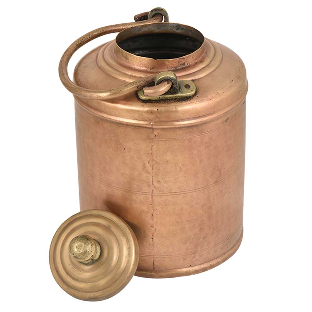Brass Milk pot with the name of the owner engraved on the cylindrical pot . It has a small lid with a lovely finial and a thick handle to carry it from place to another . It has a slight hammered design which gives it a traditional look. Use it for storage , as a planter pot , showpiece for your interiors or exteriors. Gift it to your near and dear ones on special functions.