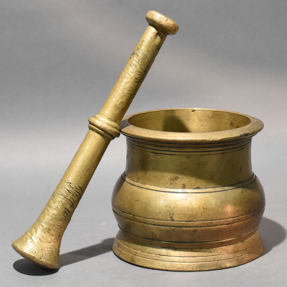 - Traditional brass mortar and pestle set