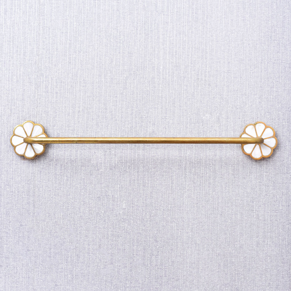 Indianshelf.com for bulk/wholesale orders.Indianshelf.us for personal purchases.The Brass Mother of Pearl Bathroom Towel Bar brings sophistication and charm to any bathroom. Crafted from high-quality brass with beautiful mother-of-pearl inlays, this towel bar offers both durability and visual appeal. It’s a timeless piece that elevates your bathroom decor with its luxurious finish and elegant detailing.