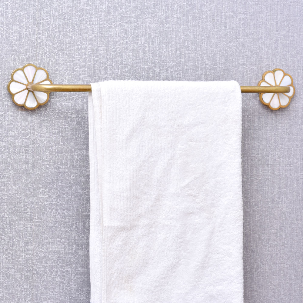 This towel bar is designed for easy installation, allowing you to quickly add functionality and style to your bathroom. Maintenance is a breeze—simply wipe clean to keep the brass and mother-of-pearl shining.