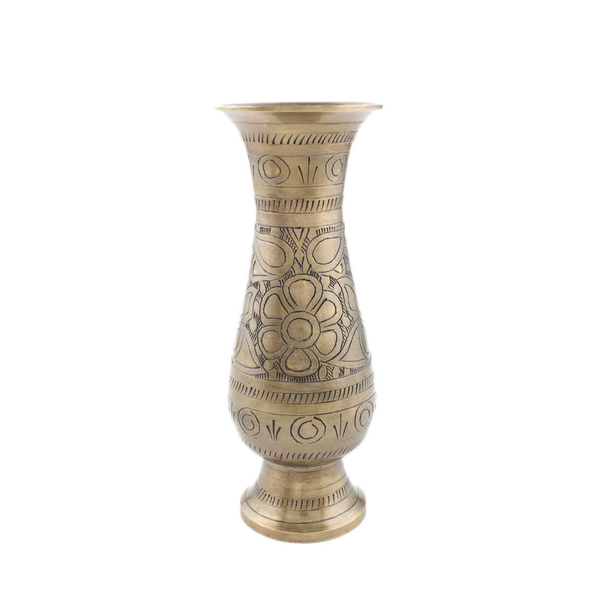 Adorable brass vase with handcrafted Adakaari work and lovely yellow finishing. Welcome the lovely, handcrafted vase into your home. It is constructed of pure brass metal. That wonderful vase is filled with characteristics, including the ability to be used as a gift and as home décor, and it was especially designed to fit compact places. This vase is a great option for modern home décor, Christmas parties, Thanksgiving parties, baby showers, corporate gatherings, wedding centerpieces, and other special occasions. The vase was handcrafted with a floral design.