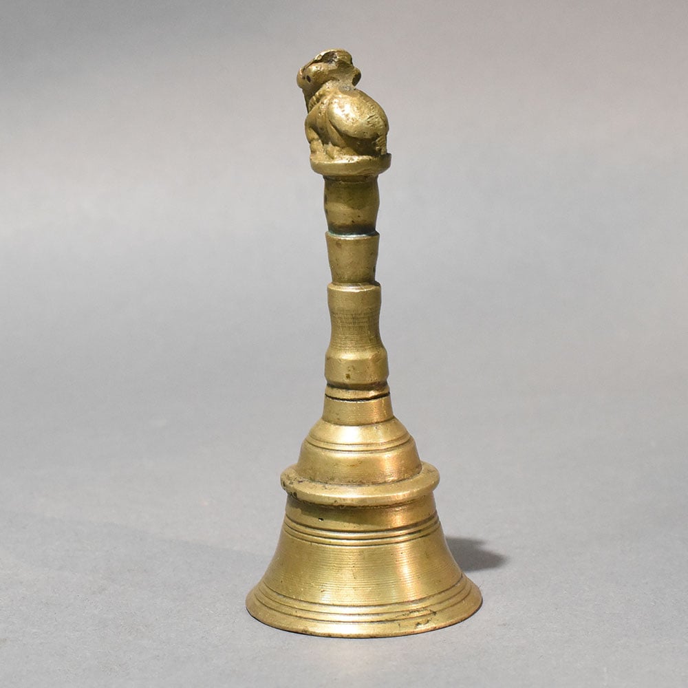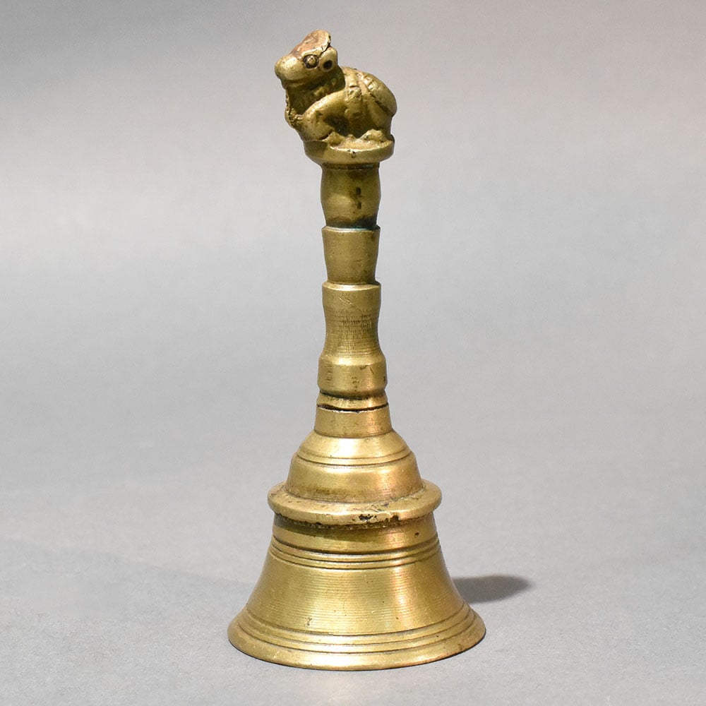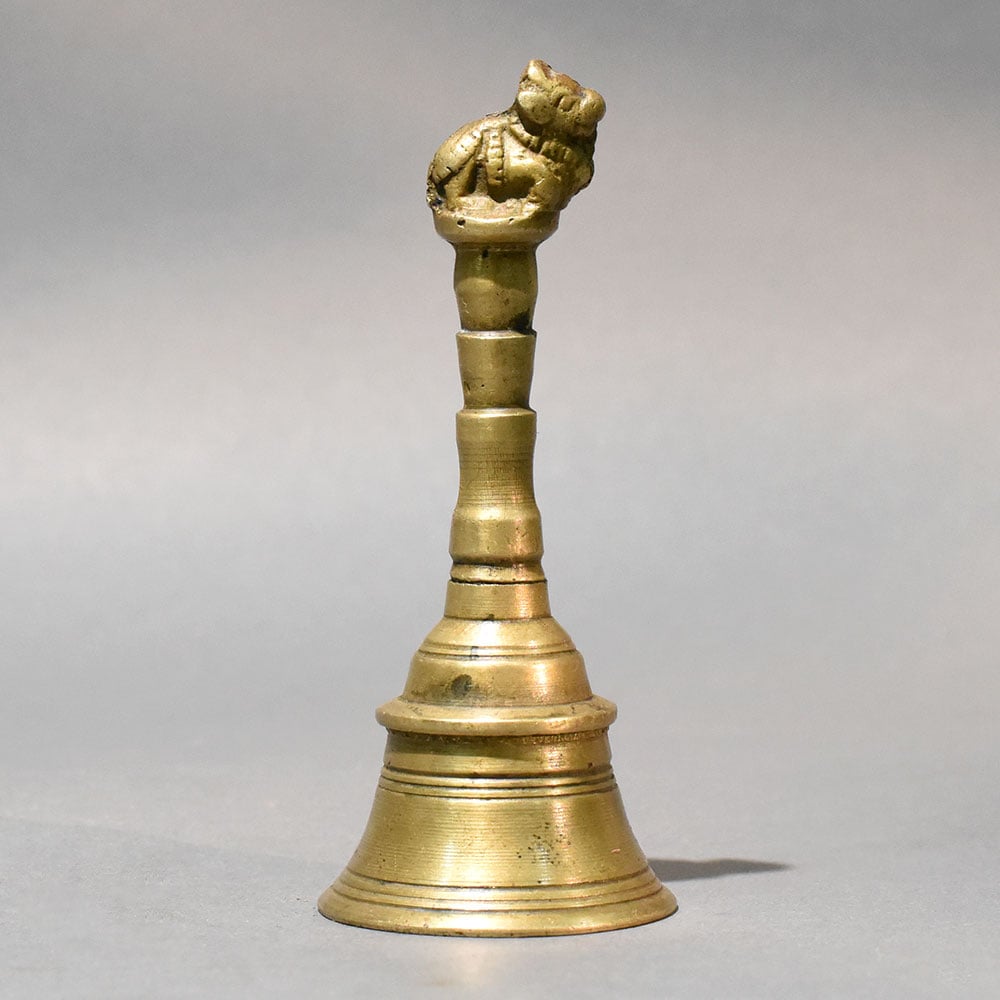 - Brass temple bell with Nandi figure handle