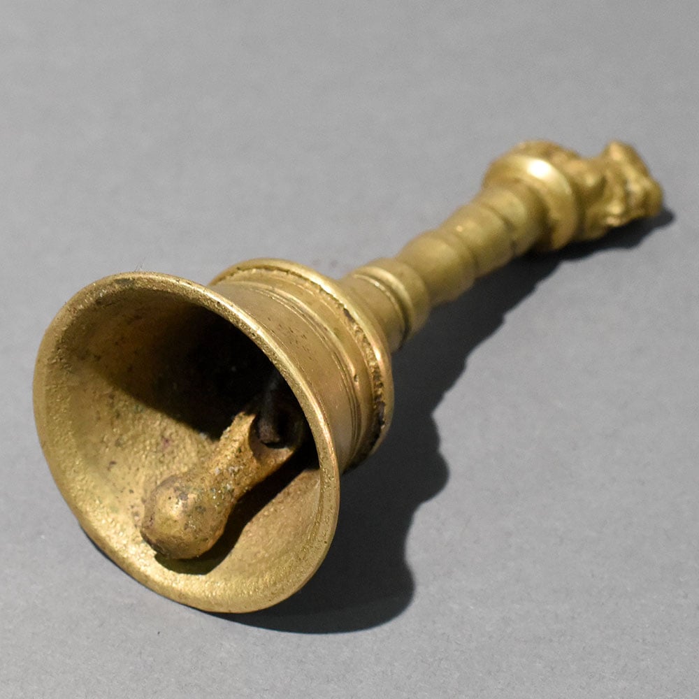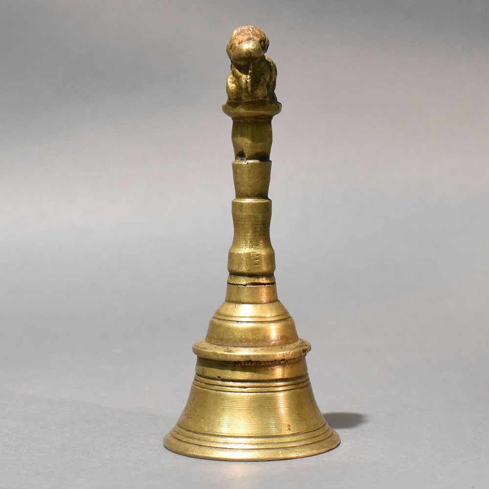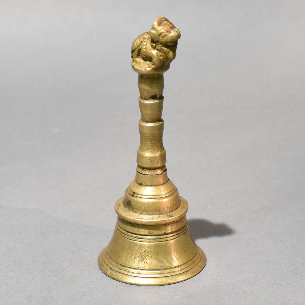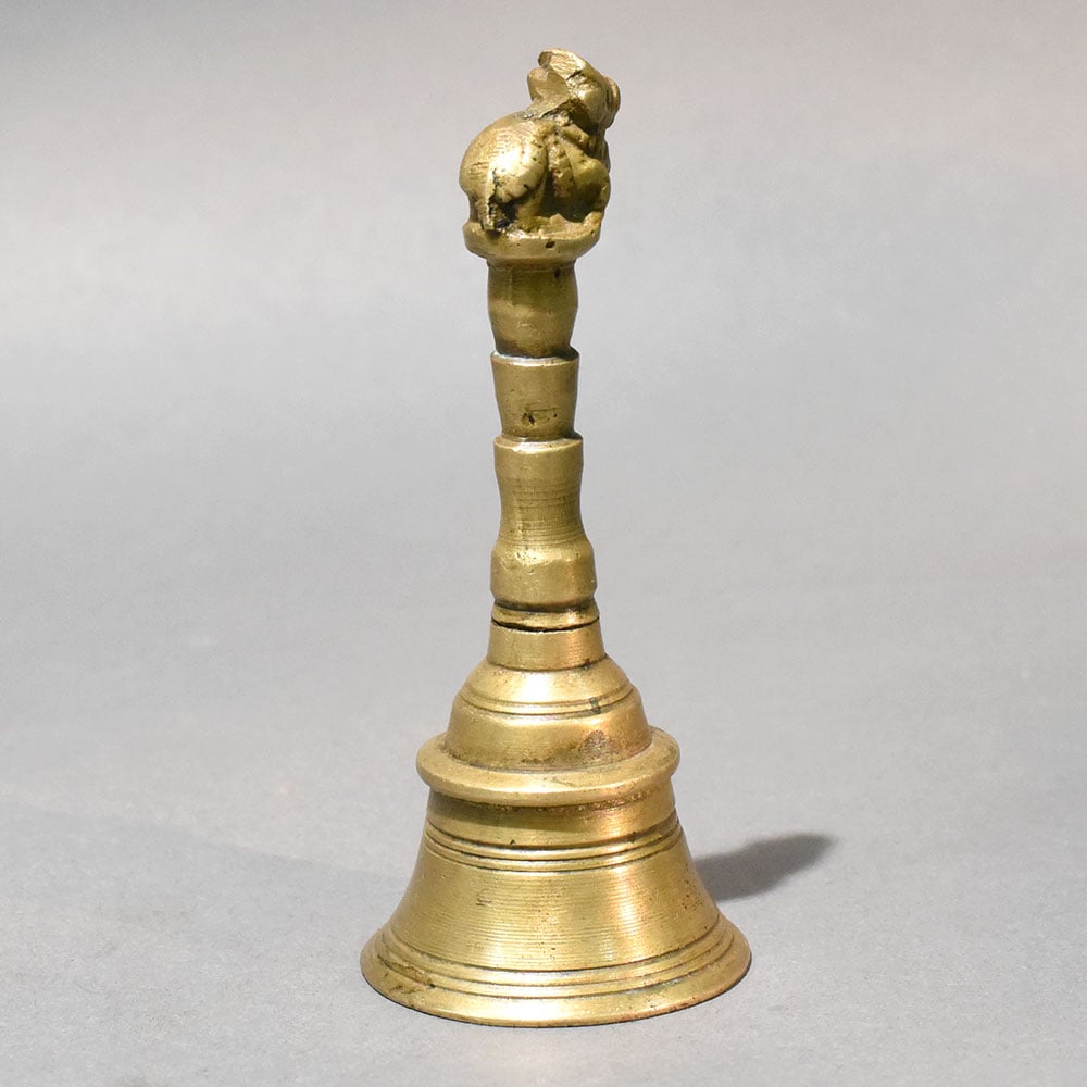 - Brass temple bell with Nandi figure handle