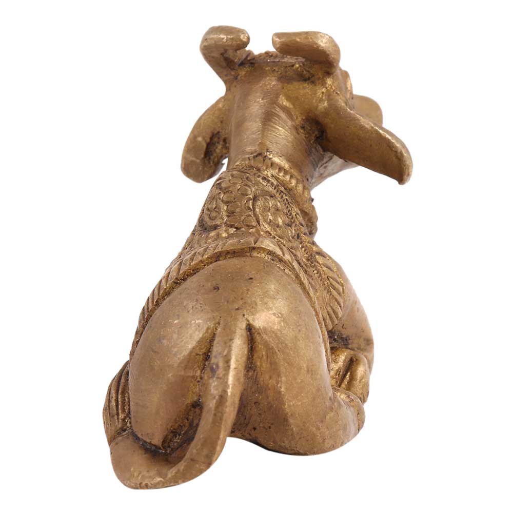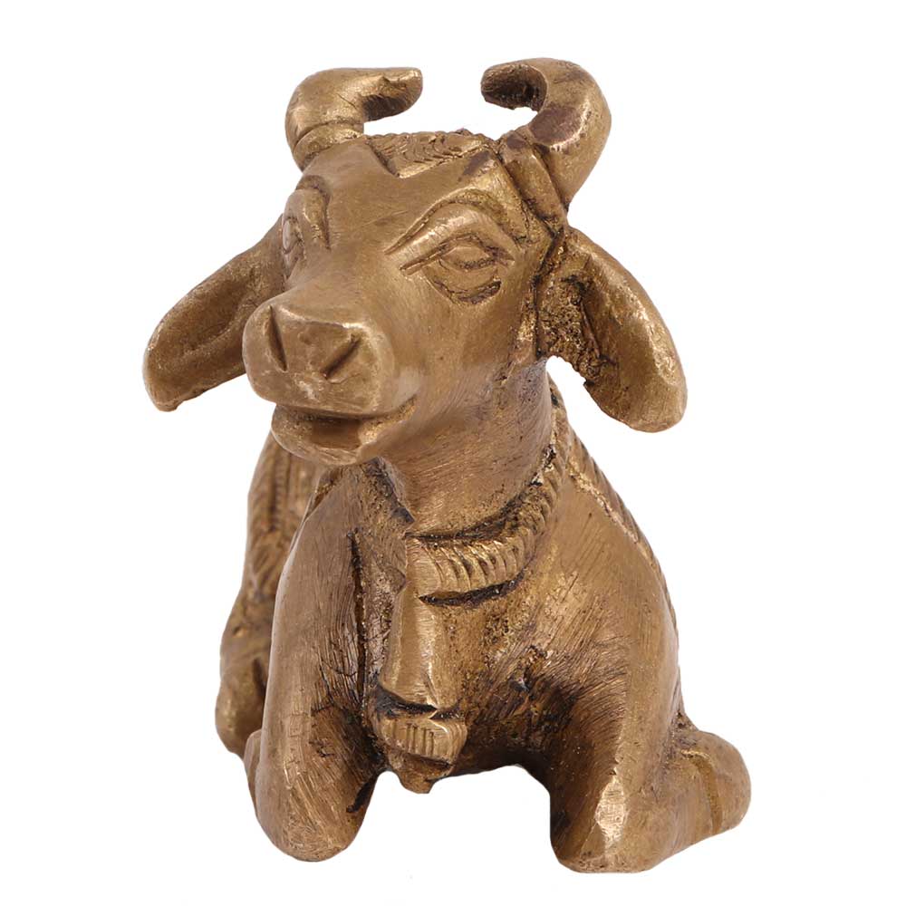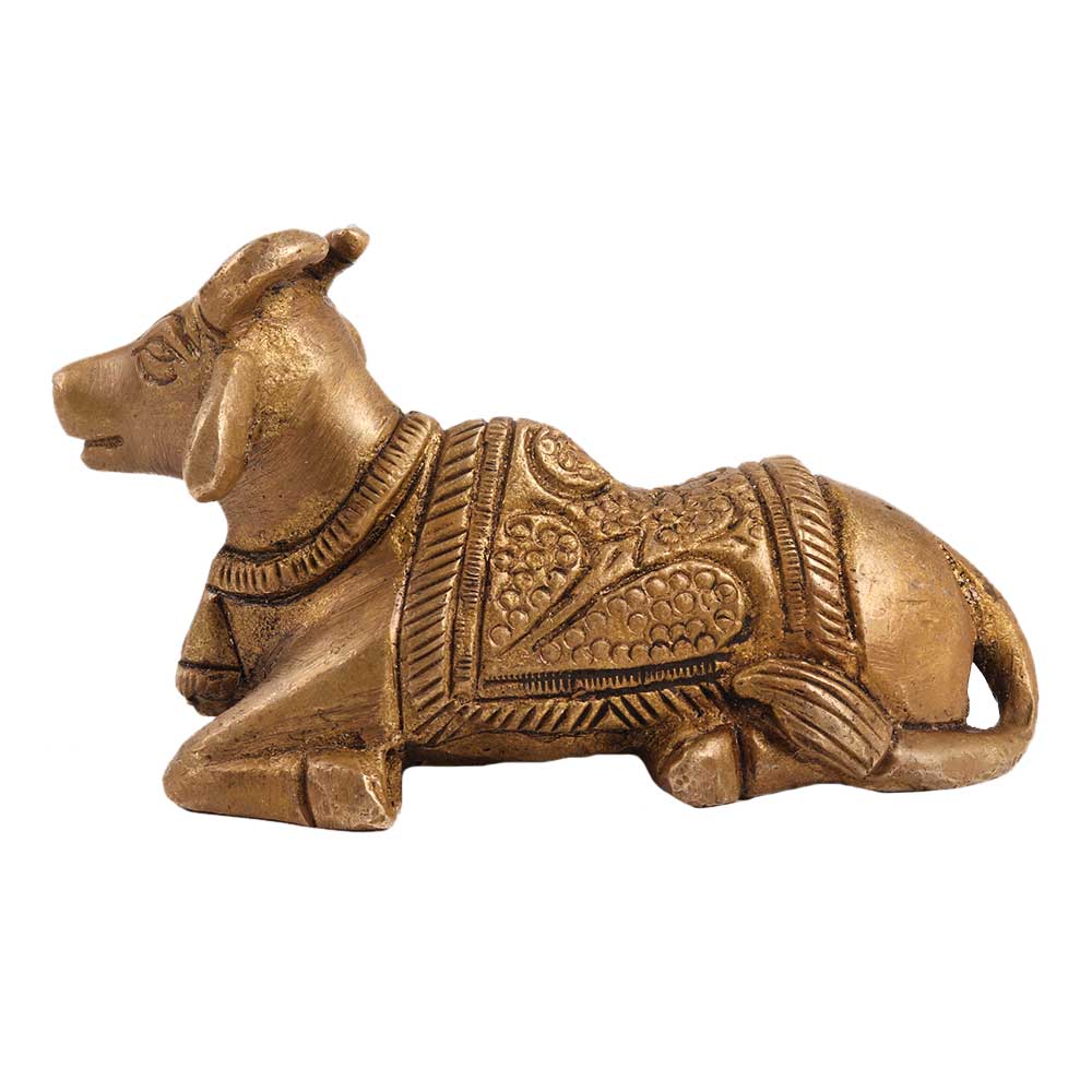 The gate-guardian of god of Kailasa, Lord Shiva's residence, is this brass Nandi Statue. He is frequently portrayed as a bull. Ancient South India had a tradition of the adorned bull. By keeping your attention on Shiva, who is Pure Consciousness, you can control the restless mind's creative energies with the help of Nandi. The Nandi, a representation of power and purity, is kneeling in adoration and worship while ready to serve his Lord Shiva. This brass Nandi exudes a celestial energy and a strength from inside. With the help of this gold Shiva and Nandi idol statue, you may bring luck into your room. It represents goodness and purity and is made of metal. Bring this lovely idol statue home to keep in your pooja room or use it to decorate your home and bring some dignity.